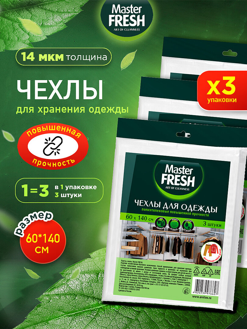 Пакеты для хранения одежды Master Fresh Набор повышенной прочности 60*140см 14мкм 3шт*3уп информация: