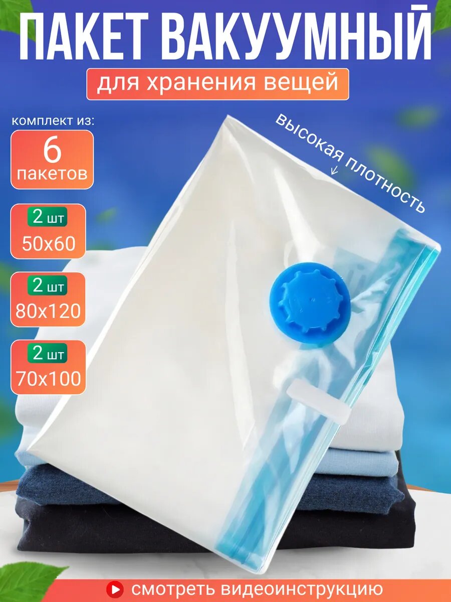 Вакуумные пакеты для одежды и вещей набор 6 штук информация: