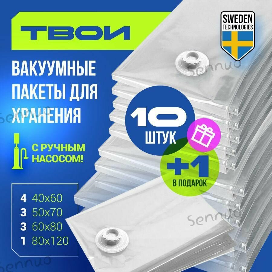 10 цен на Прозрачный вакуумный пакет для одежды, 10 шт, ручной насос, 1 шт, для хранения одежды и курток