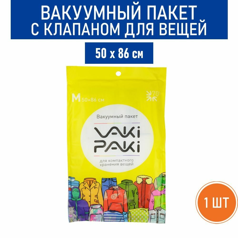 Вакуумный пакет с клапаном для вещей VAKIPAKI, размер M, 50х86 см - 1 шт. информация: