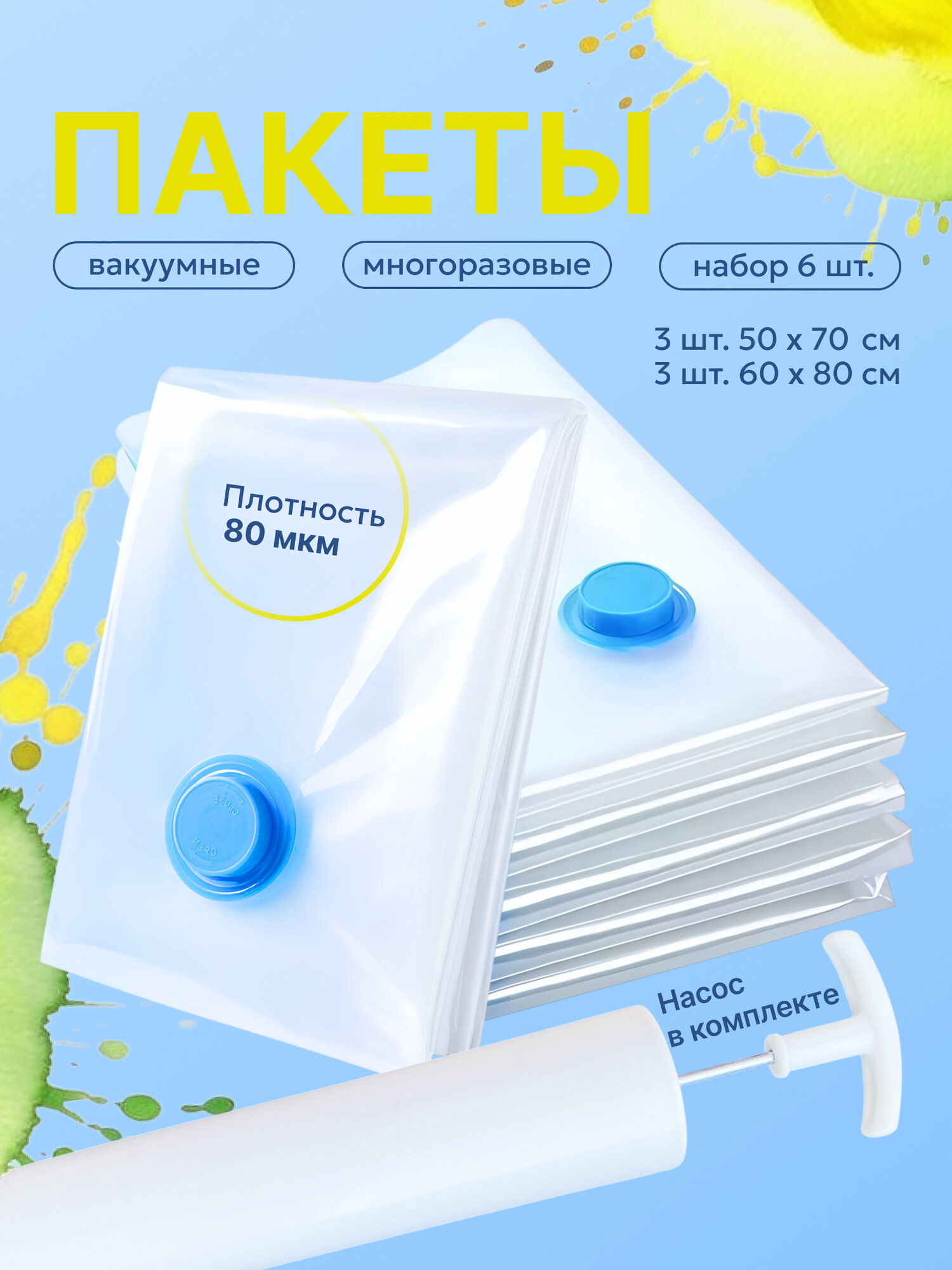 Отзывы на Набор вакуумных пакетов Unistor CLASP, для одежды, с насосом, 6 шт.