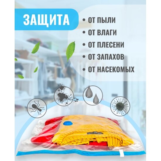 Вакуумный пакет для хранения вещей и одежды Protect 10214, 50x70 см /многоразовый /с zip молнией/с клапаном информация: