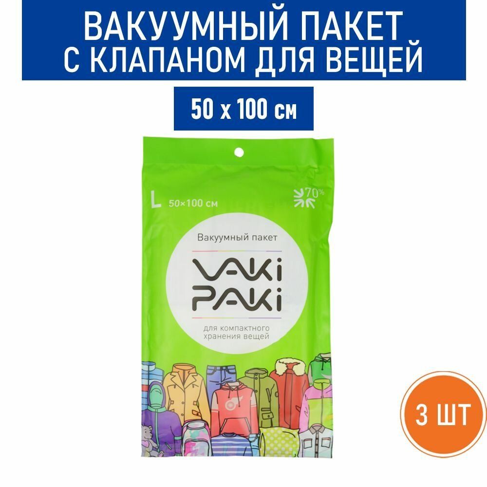 Вакуумный пакет с клапаном для вещей VAKIPAKI, размер L, 50х100 см - 3 шт. информация: