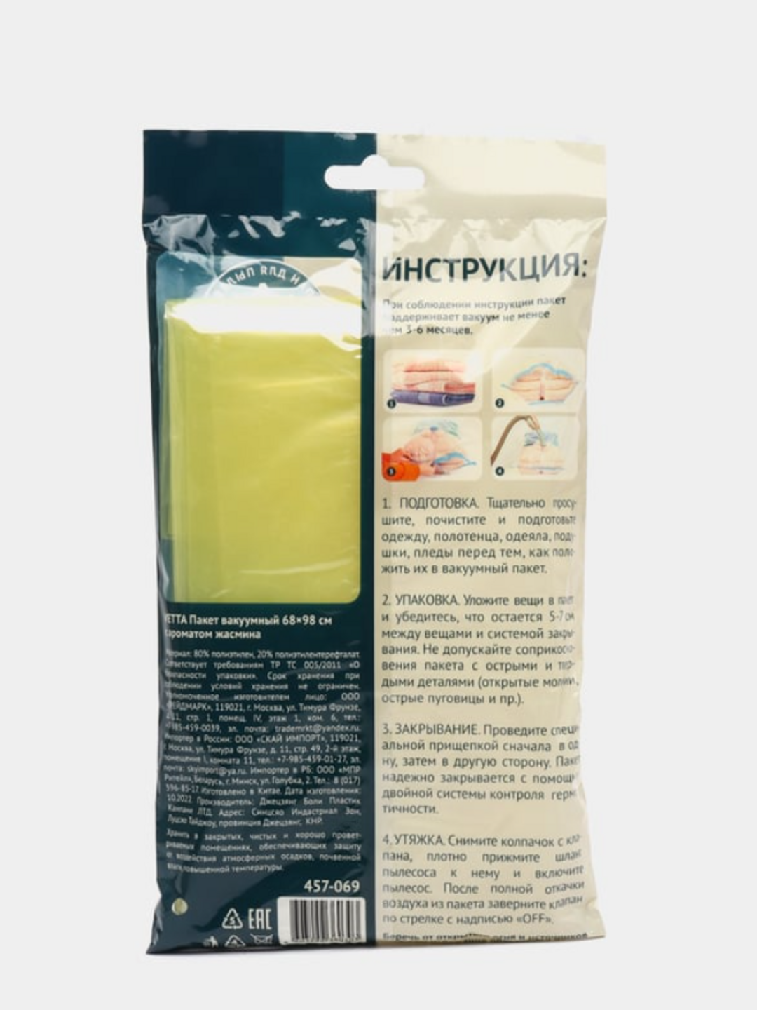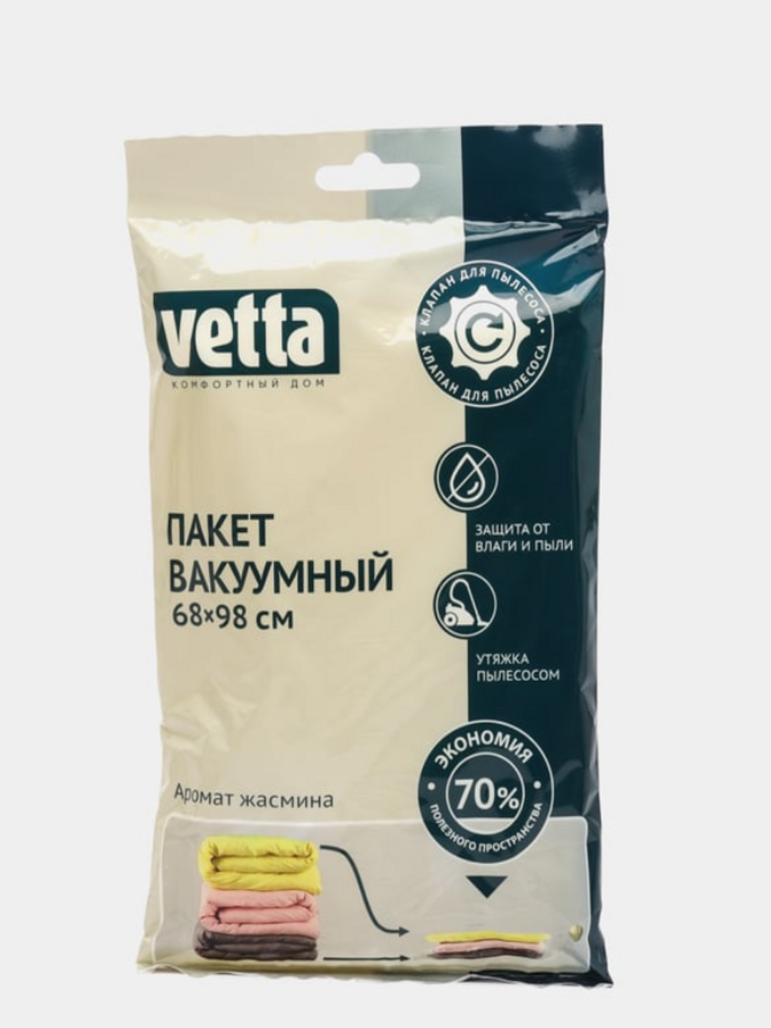 Вакуумные пакеты для хранения вещей с клапаном для пылесоса, 68х98см с ароматом жасмина информация: