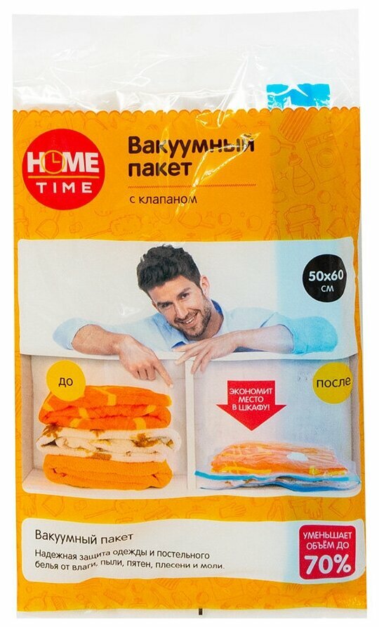 Вакуумный пакет с клапаном, Home Time, 50х60 см информация: