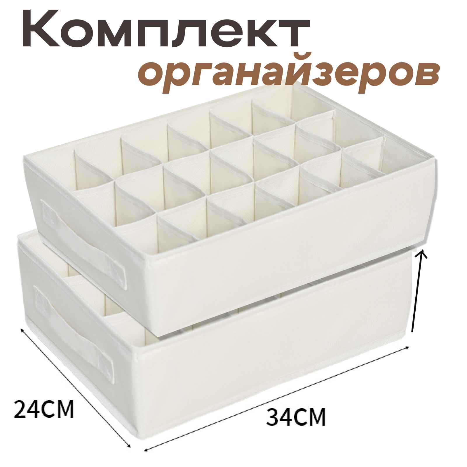 Отзывы на Органайзеры для хранения вещей с ячейками для белья и носков, комплект из 2 штук. 34x24x10 см, 18 ячеек