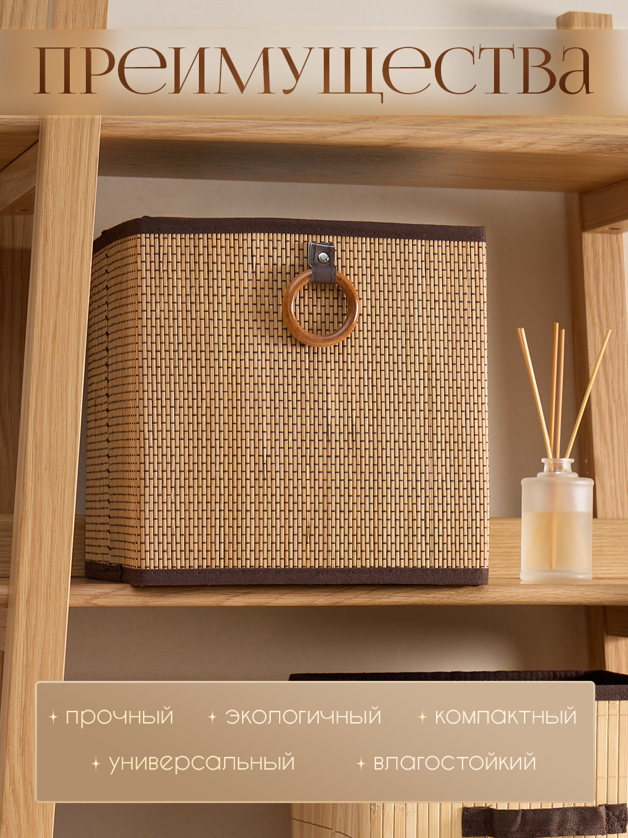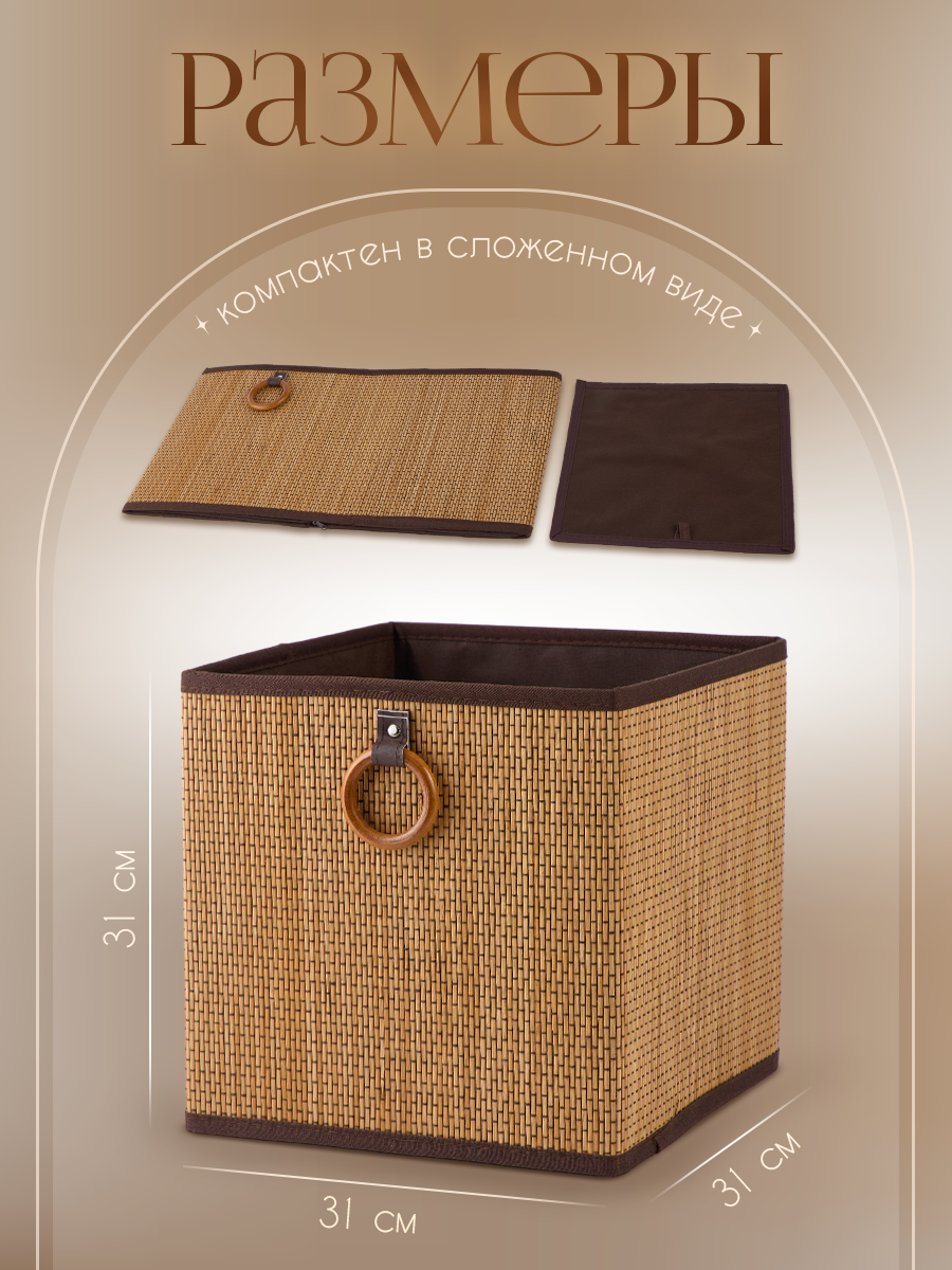 Короб для хранения SIAMART плетеный из бамбука, 31*31*31* см, складной информация: