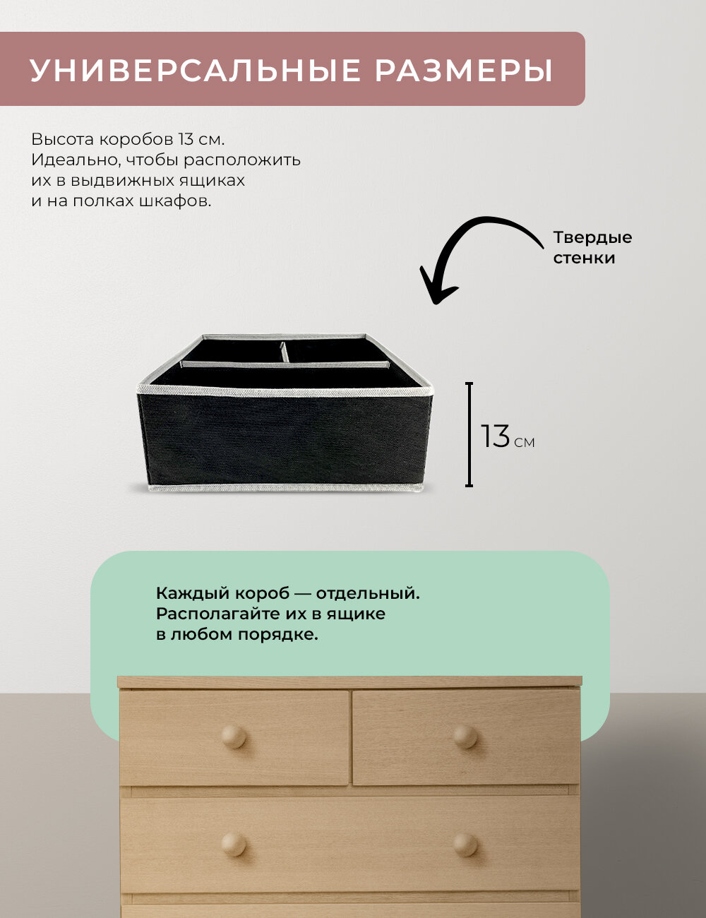 Органайзер для хранения вещей и белья ГЕЛЕОС "Венге", 28х28х13 см, с 3 ячейками информация: