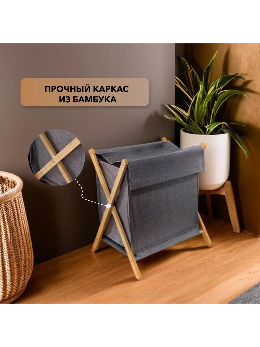 Корзина для хранения белья и игрушек с крышкой в ванную и детскую комнату , складная из бамбука 70л информация: