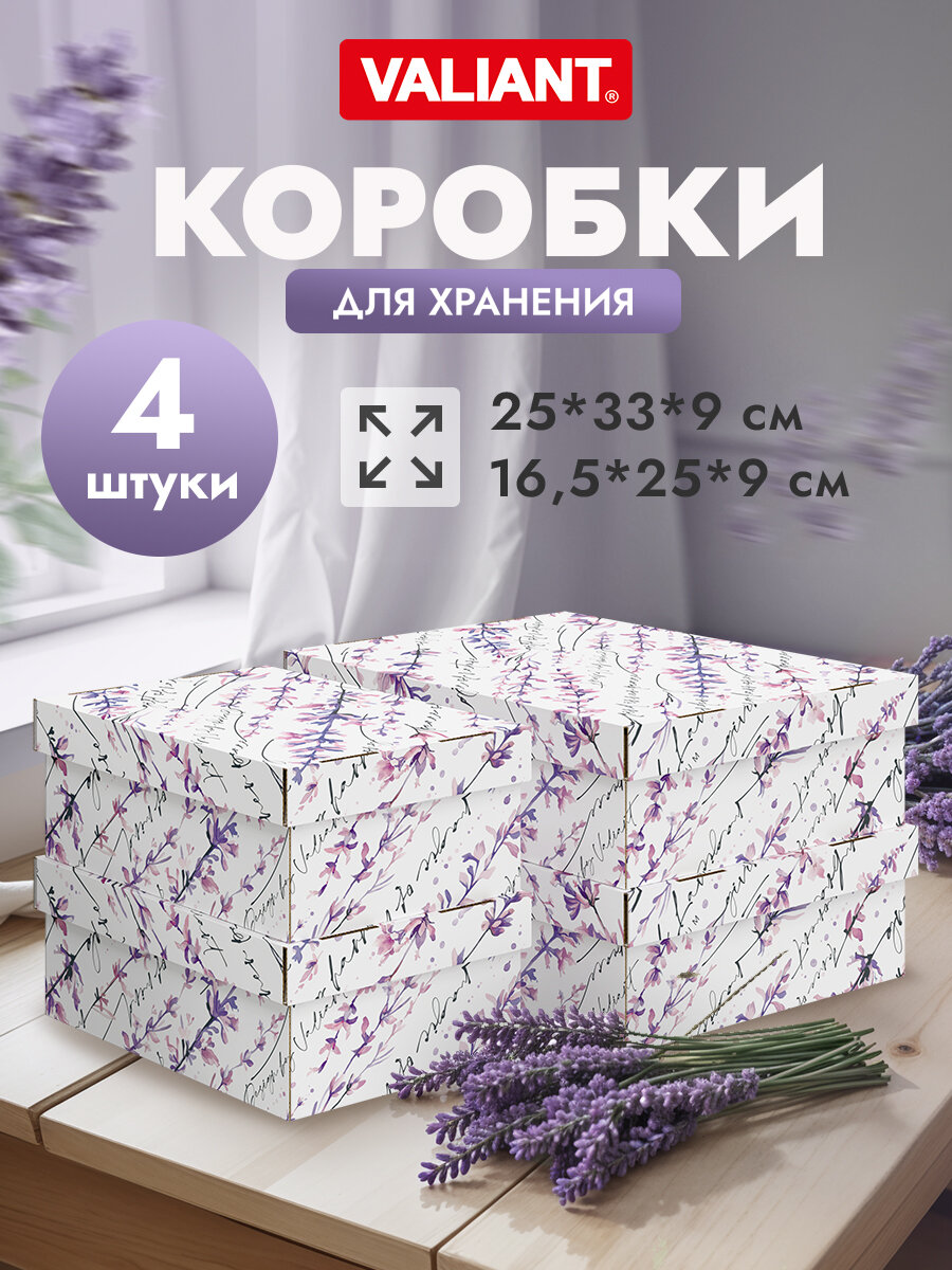 Коробки для хранения вещей, игрушек, коробка для подарка с крышкой картонная, набор 4 шт, HERBARIUM LAVENDER информация: