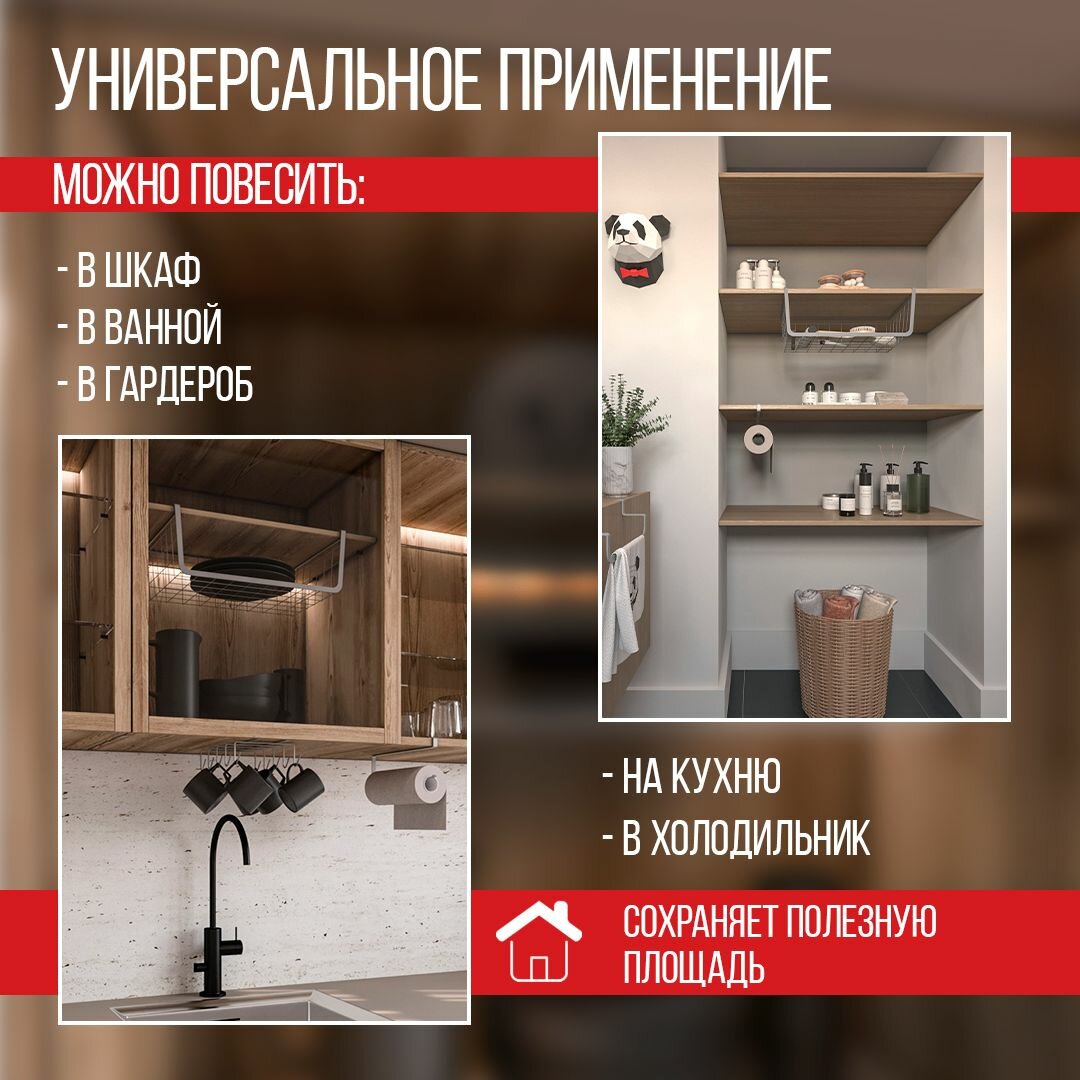 10 цен на Корзина для хранения подвесная, органайзер в шкаф металлический, 36*14,5*25 см. Металлик серебристый