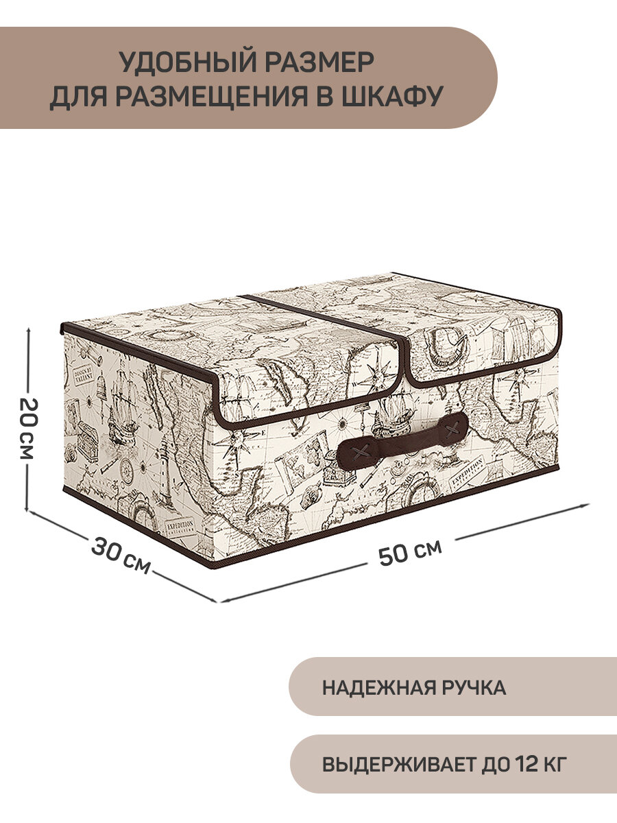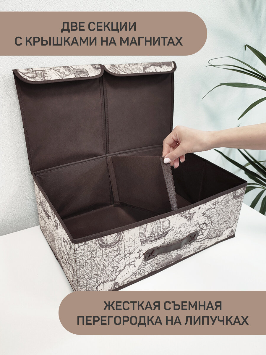 Коробка для хранения вещей с крышкой, короб для хранения стеллажный, корзина, ящик с двумя отделениями, 50*30*20 см, MONET AUTUMN 1 130 ₽