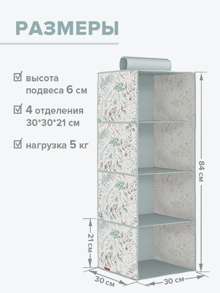 Кофр подвесной для хранения, 4 секции, 30*30*84 см, BOTANIC информация:
