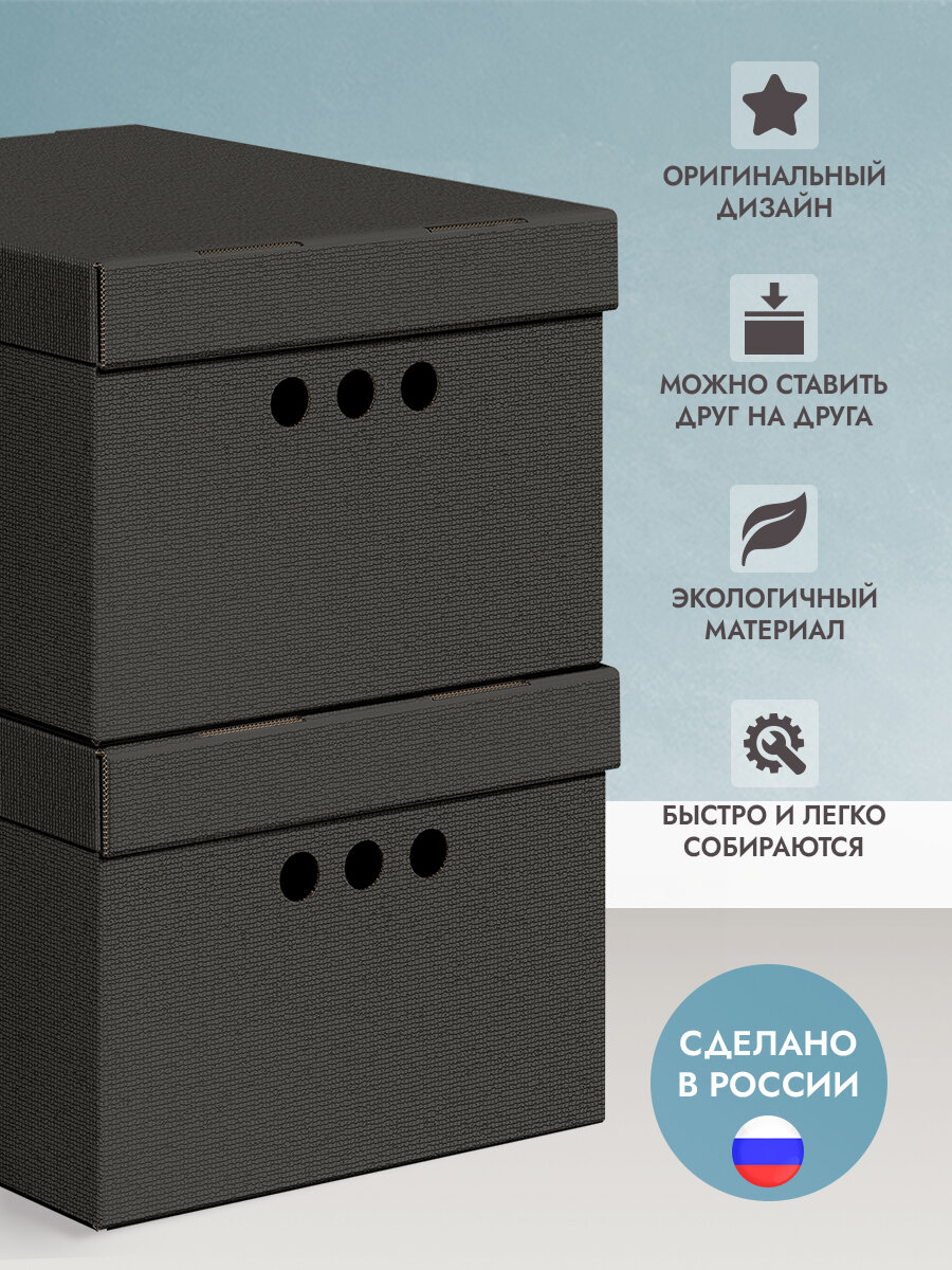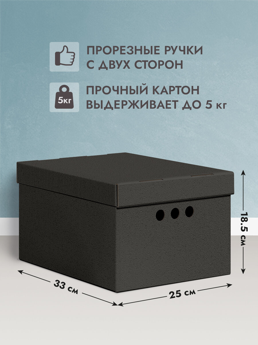 Короба картонные, 25*33*18.5 см, набор 3 шт, черн, CLASSIC GREY информация: