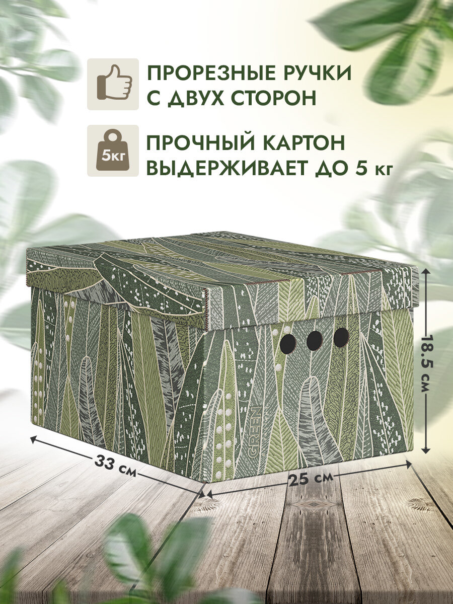 Коробки для хранения вещей, игрушек, обуви, картонные, короб для хранения с крышкой, 25*33*18,5 см, набор 3 шт, GREEN NATURE информация: