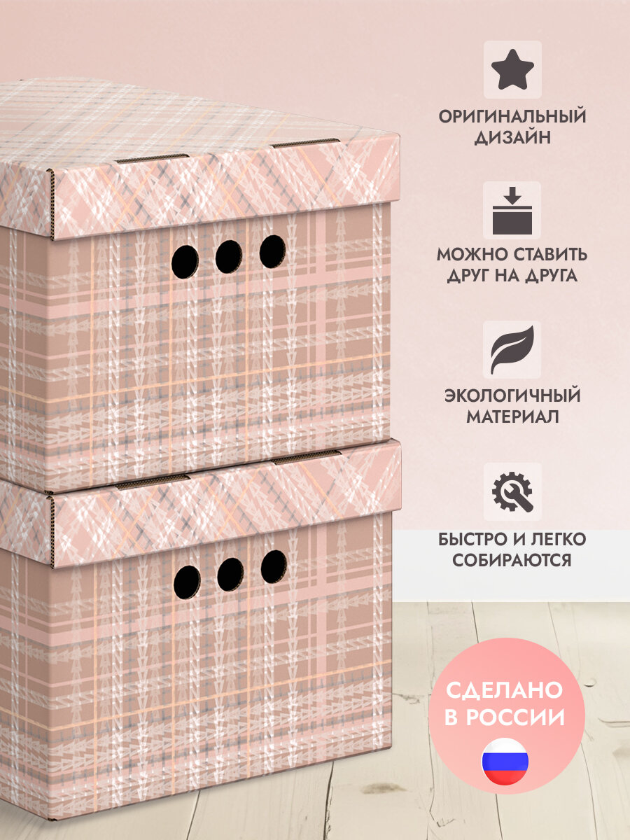 Коробки для хранения вещей, игрушек, обуви, картонные, короб для хранения с крышкой, 25*33*18,5 см, набор 3 шт, BOTANIC 782 ₽