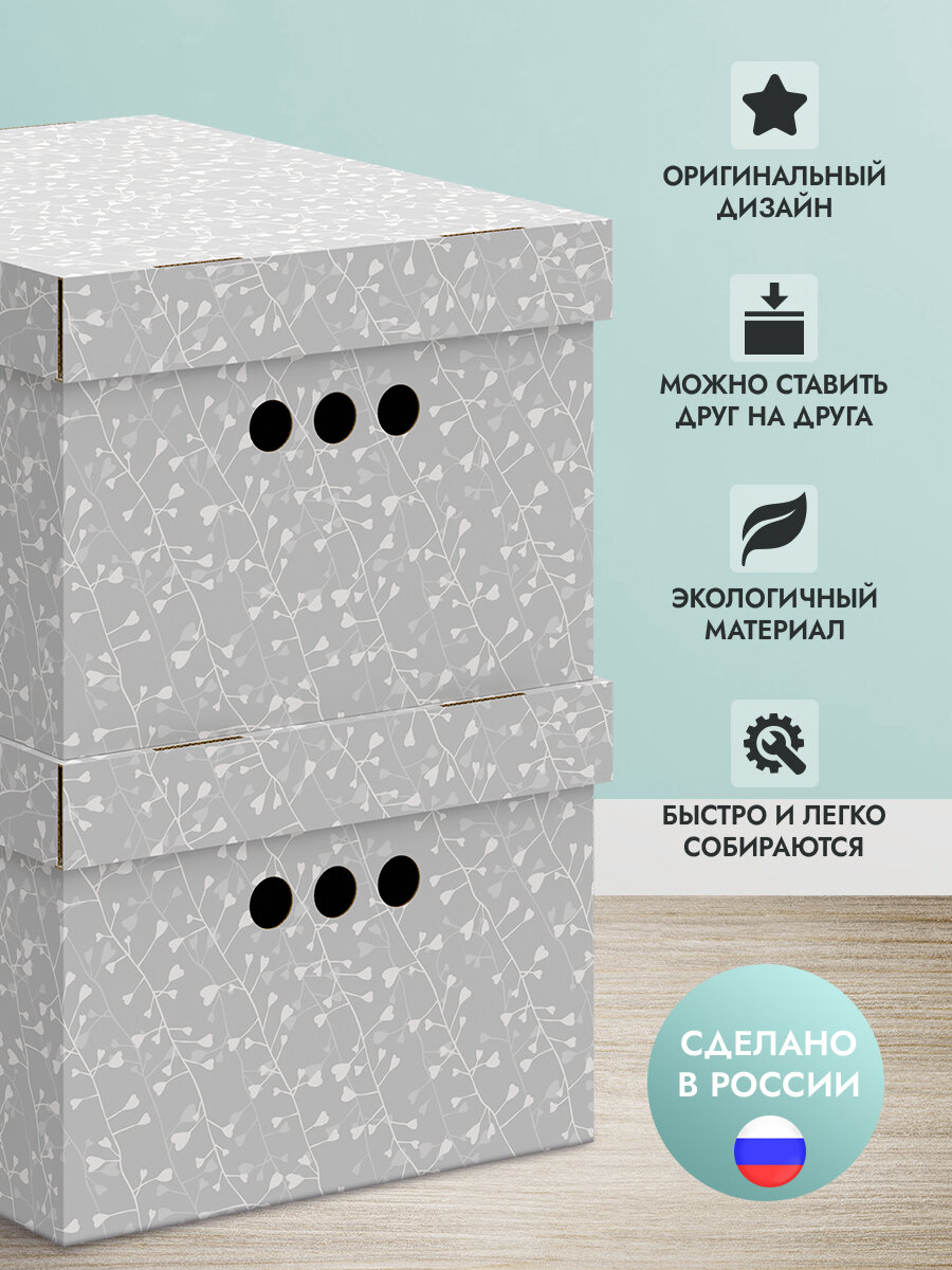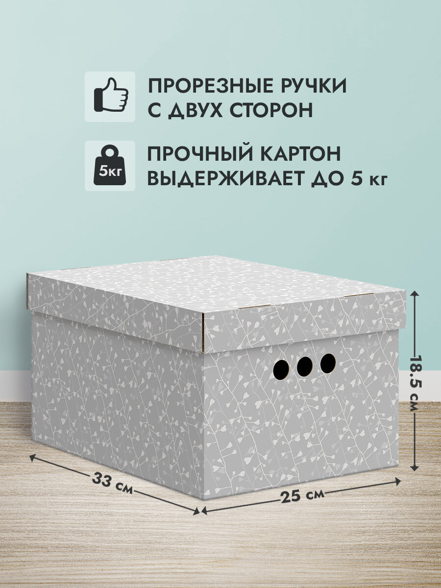 Коробки для хранения вещей, игрушек, обуви, картонные, короб для хранения с крышкой, 25*33*18,5 см, набор 3 шт, BOTANIC GREY информация: