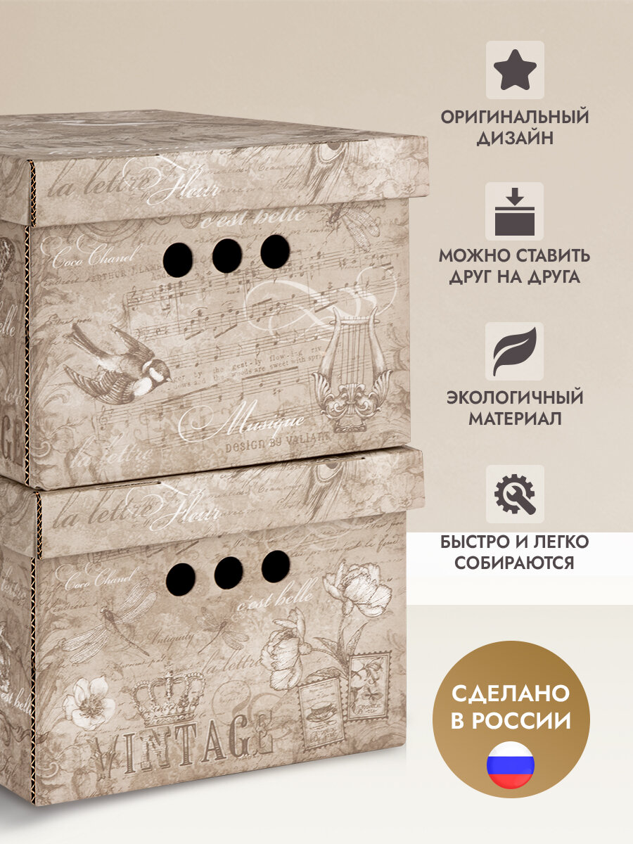 Короба картонные, 25*33*18.5 см, набор 3 шт, VINTAGE информация:
