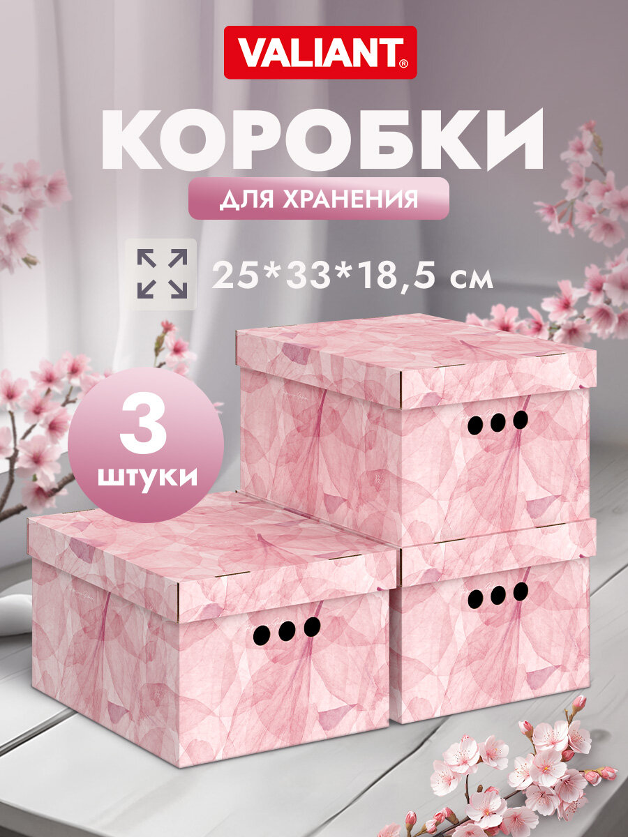 Отзывы на Коробки для хранения вещей, картонные, короб для хранения с крышкой, 25*33*18,5 см, набор 3 шт, HERBARIUM SAKURA
