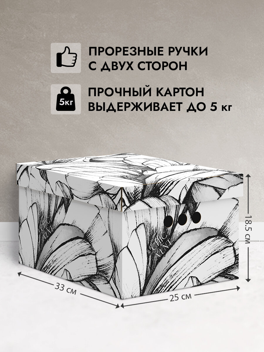 Коробка для хранения вещей с крышкой, короб для хранения стеллажный, корзина, ящик, 28*30*16 см, VALIANT BOTANIC