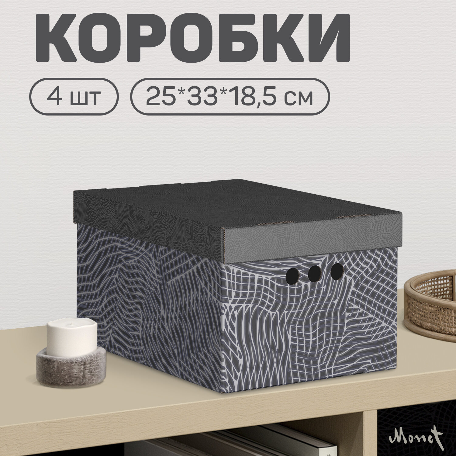 Коробки для хранения вещей, игрушек, обуви, картонные, короб для хранения с крышкой, 25*33*18,5 см набор 4 шт, MONET MORNING 828 ₽
