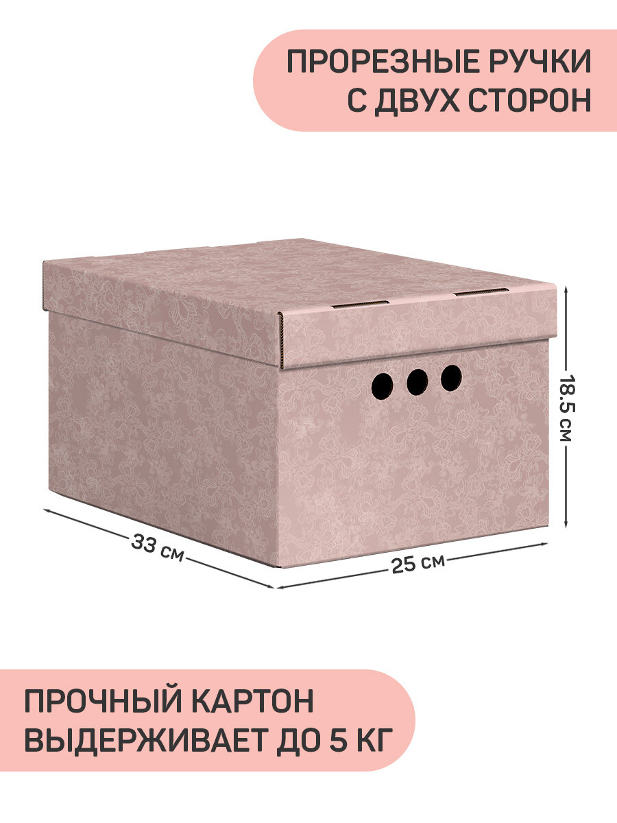 Коробки для хранения вещей, игрушек, обуви, картонные, короб для хранения с крышкой, 25*33*18,5 см набор 4 шт, Jardin mix информация: