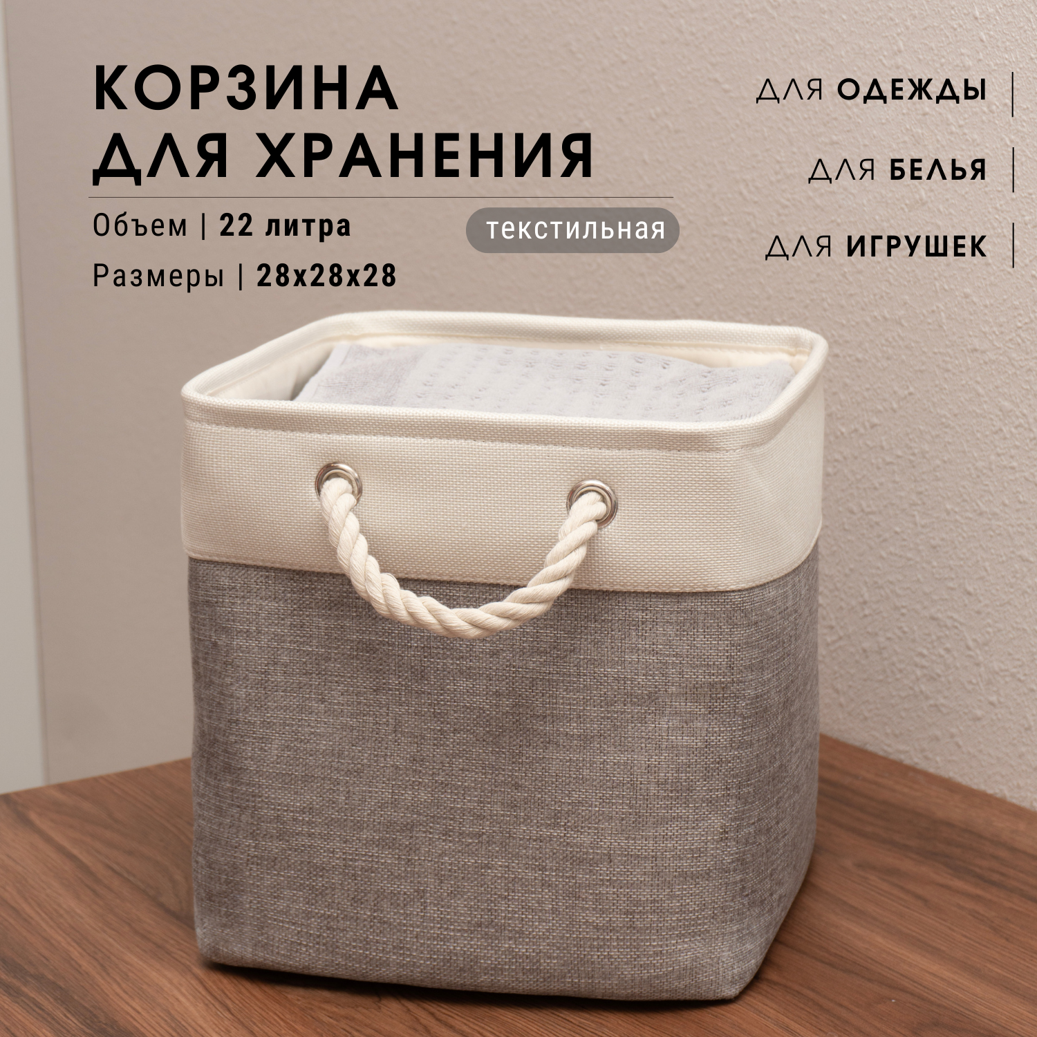 Текстильная корзина для хранения / HOMO / 28*28*28, 22 литра / цвет: св. бежевый, белый 790 ₽