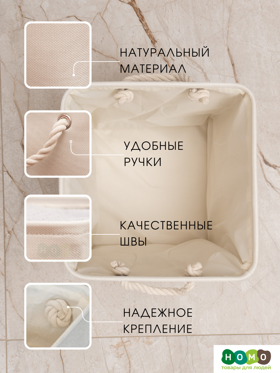 Текстильная корзина для хранения / HOMO / 28*28*28, 22 литра / цвет: св. бежевый, белый 790 ₽