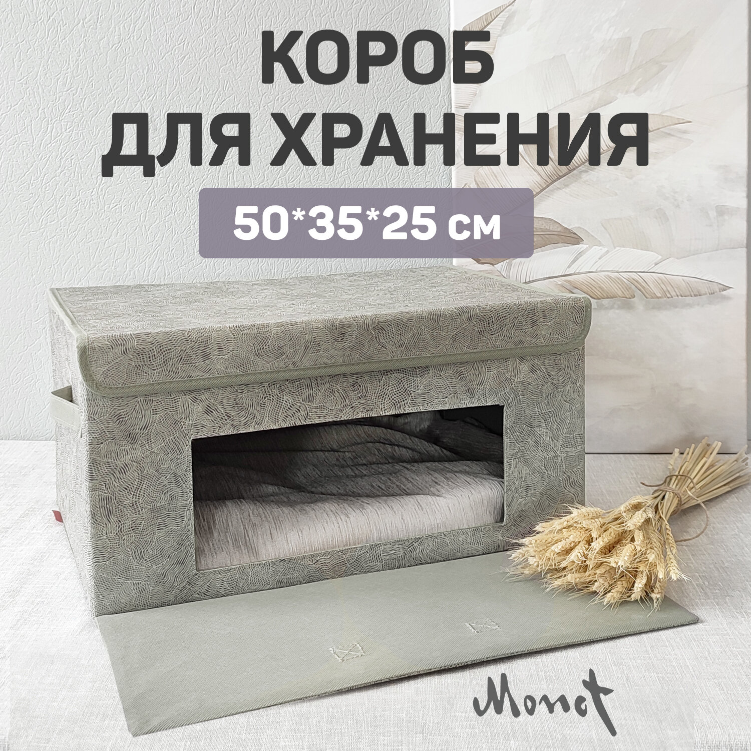Коробка для хранения вещей с крышкой, короб для хранения стеллажный, корзина, ящик с откидной стенкой, 50*35*25 см, MONET MORNING информация: