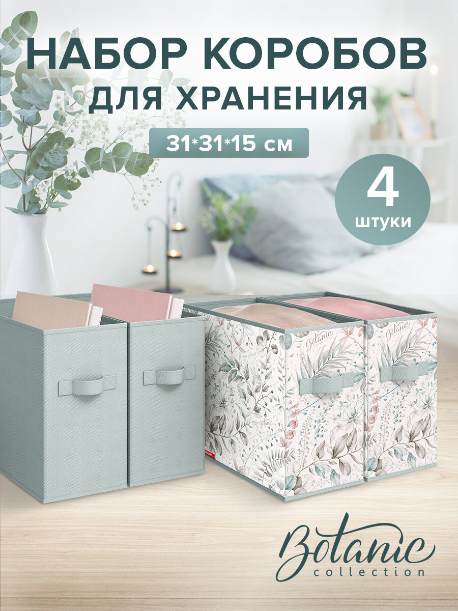 Коробки для хранения вещей, короб для хранения стеллажный, корзина, органайзер, набор 4 шт, 31*31*15 см, BOTANIC 1 803 ₽