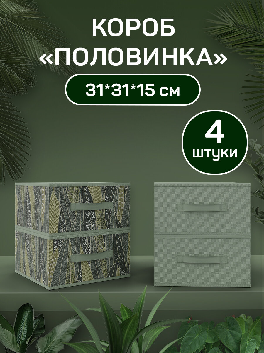 Коробки для хранения вещей, органайзер для хранения, ящик, подставка для книг и журналов, набор 4 шт, 31*31*15 см, GREEN 2 092 ₽