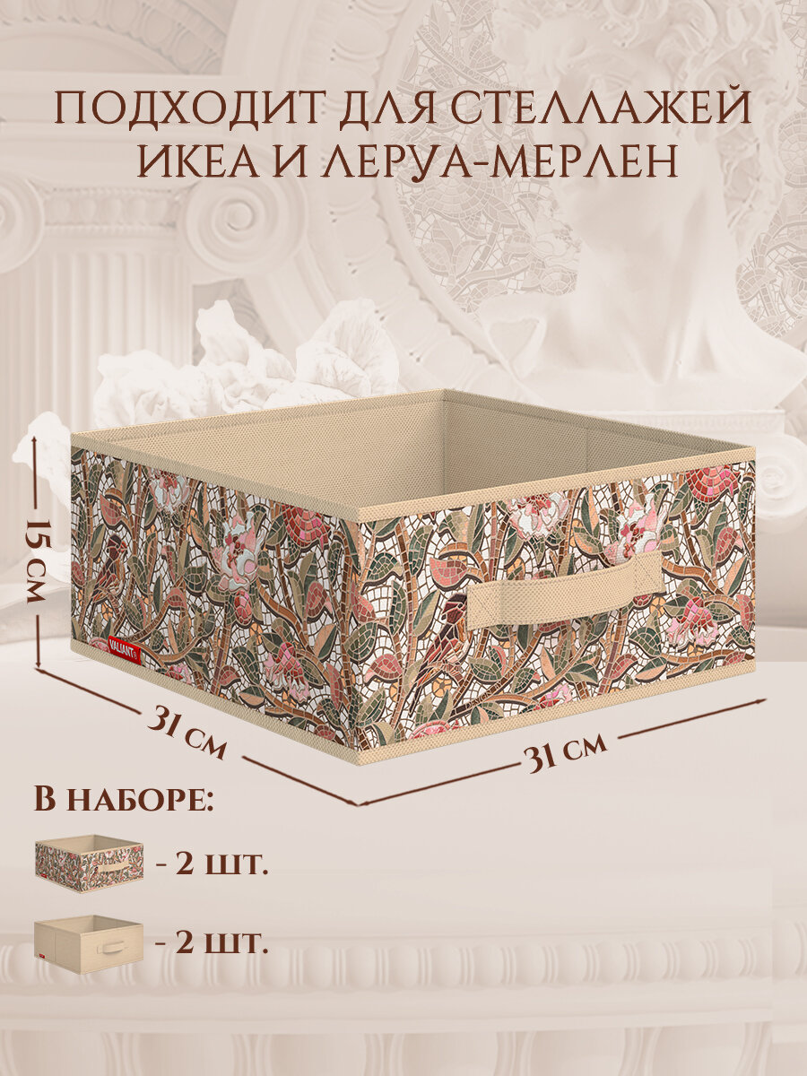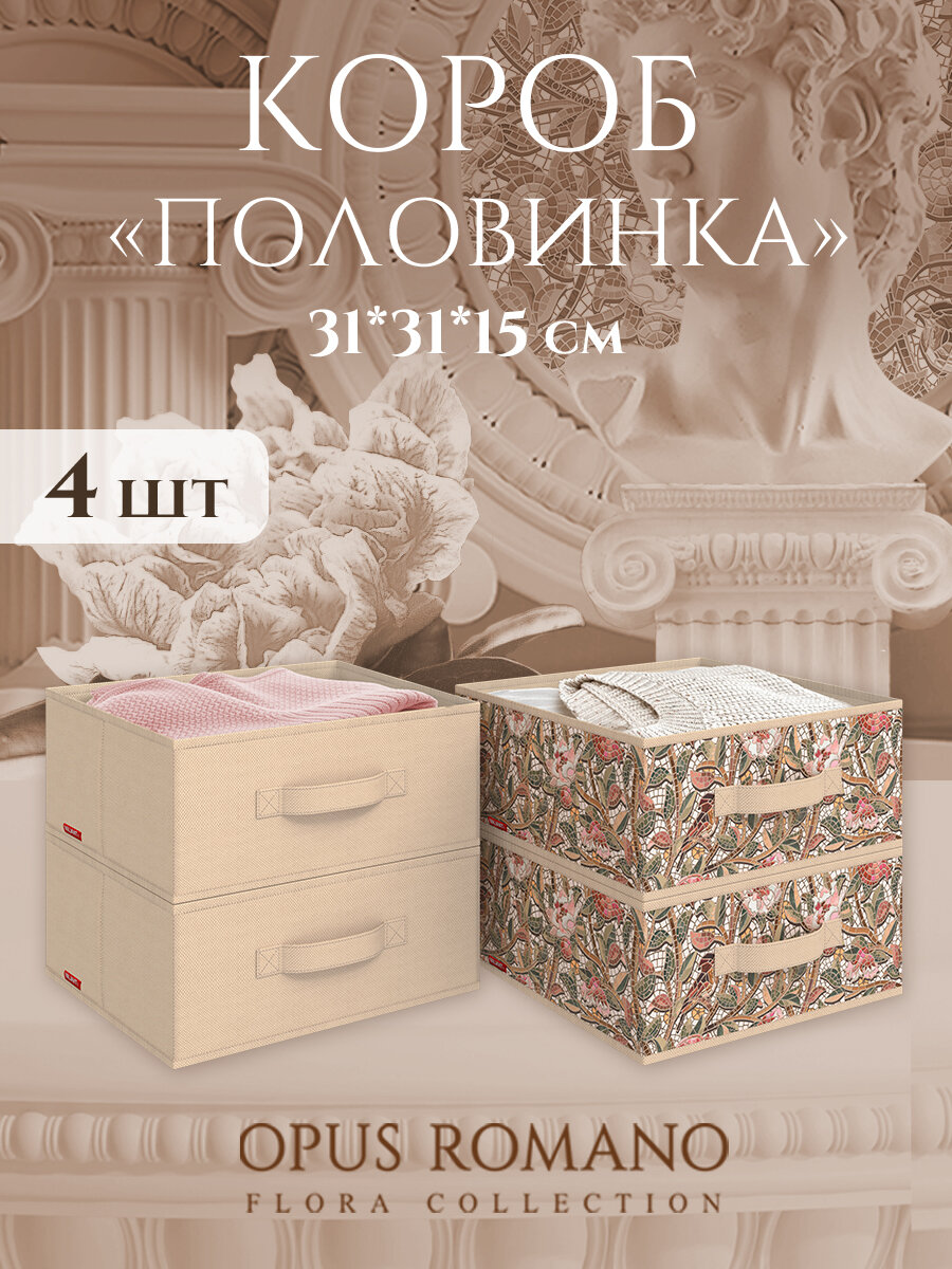 Коробки для хранения вещей, стеллажные, органайзер для хранения, ящик, набор 4шт, 31*31*15 см, OPUS ROMANO FLORA информация: