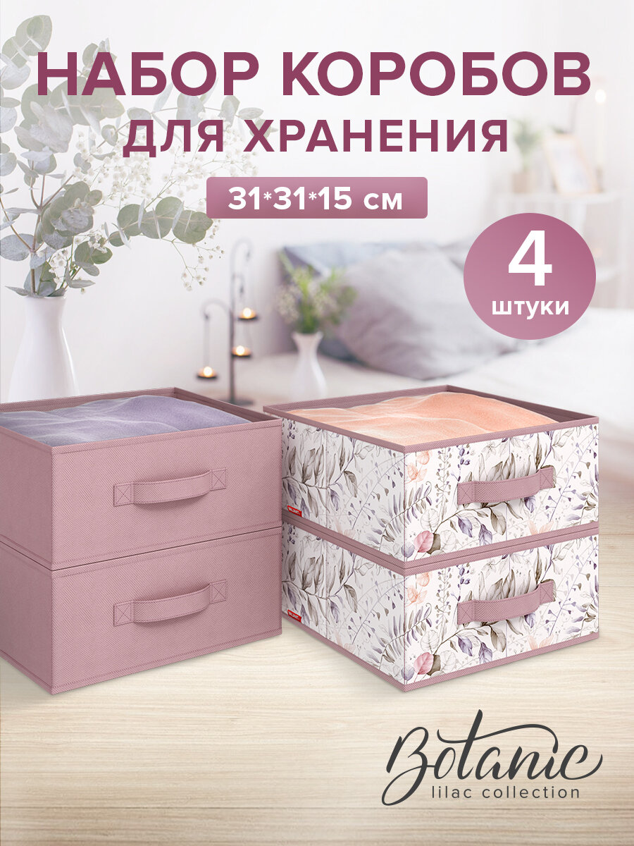 Коробки для хранения вещей, органайзер для хранения, ящик, корзина, набор 4 шт, 31*31*15 см, BOTANIC LILAC 1 970 ₽