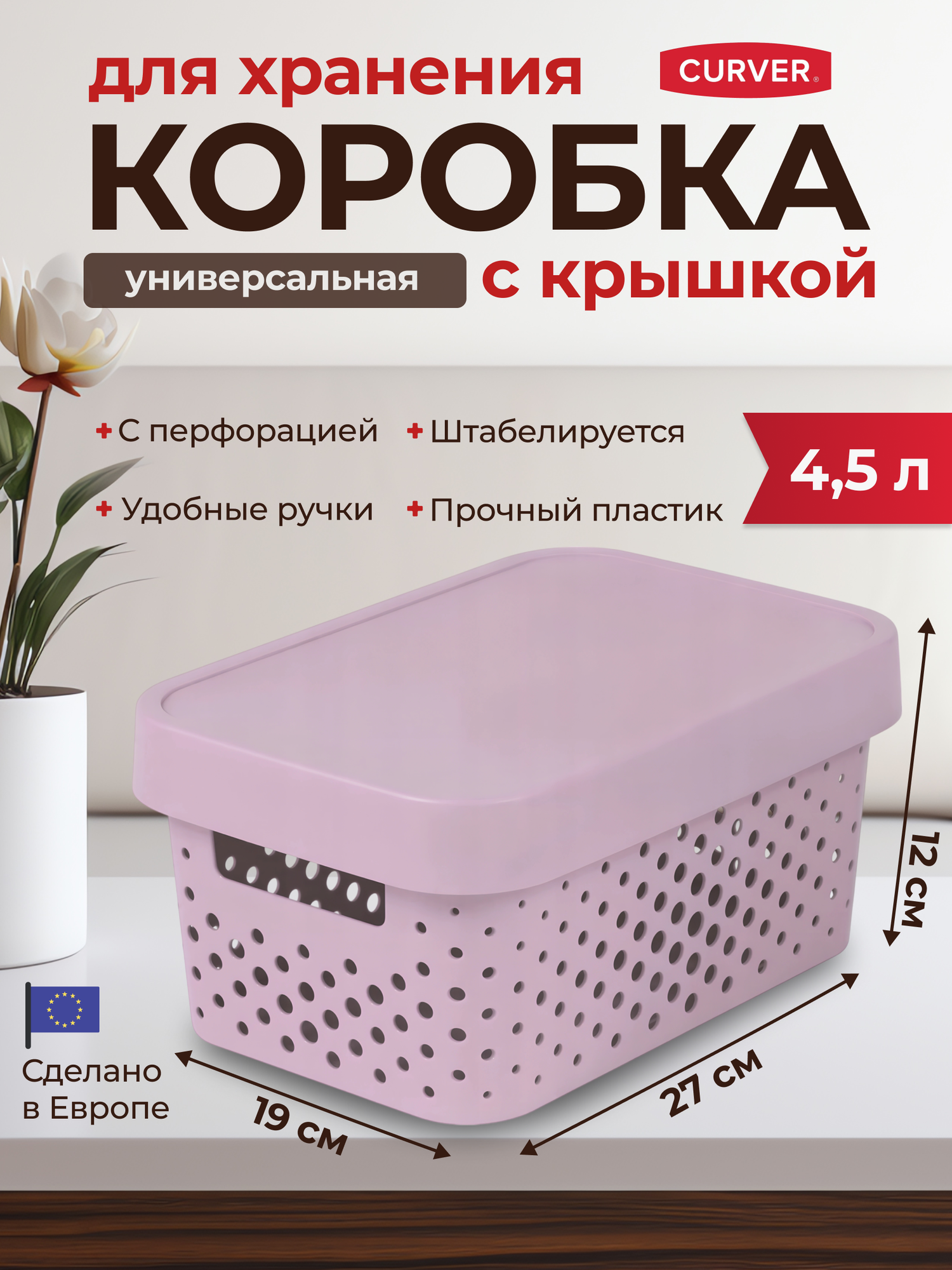 Коробка для хранения с крышкой Curver INFINITY с перфорацией 4,5 л, 4760 розовый информация: