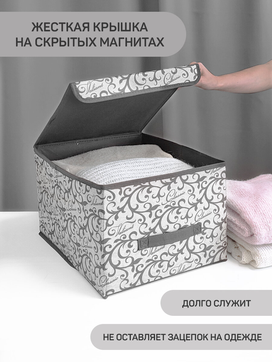 Коробка для хранения вещей с крышкой, короб для хранения стеллажный, корзина, ящик, 30*40*25 см, CLASSIC GREY информация: