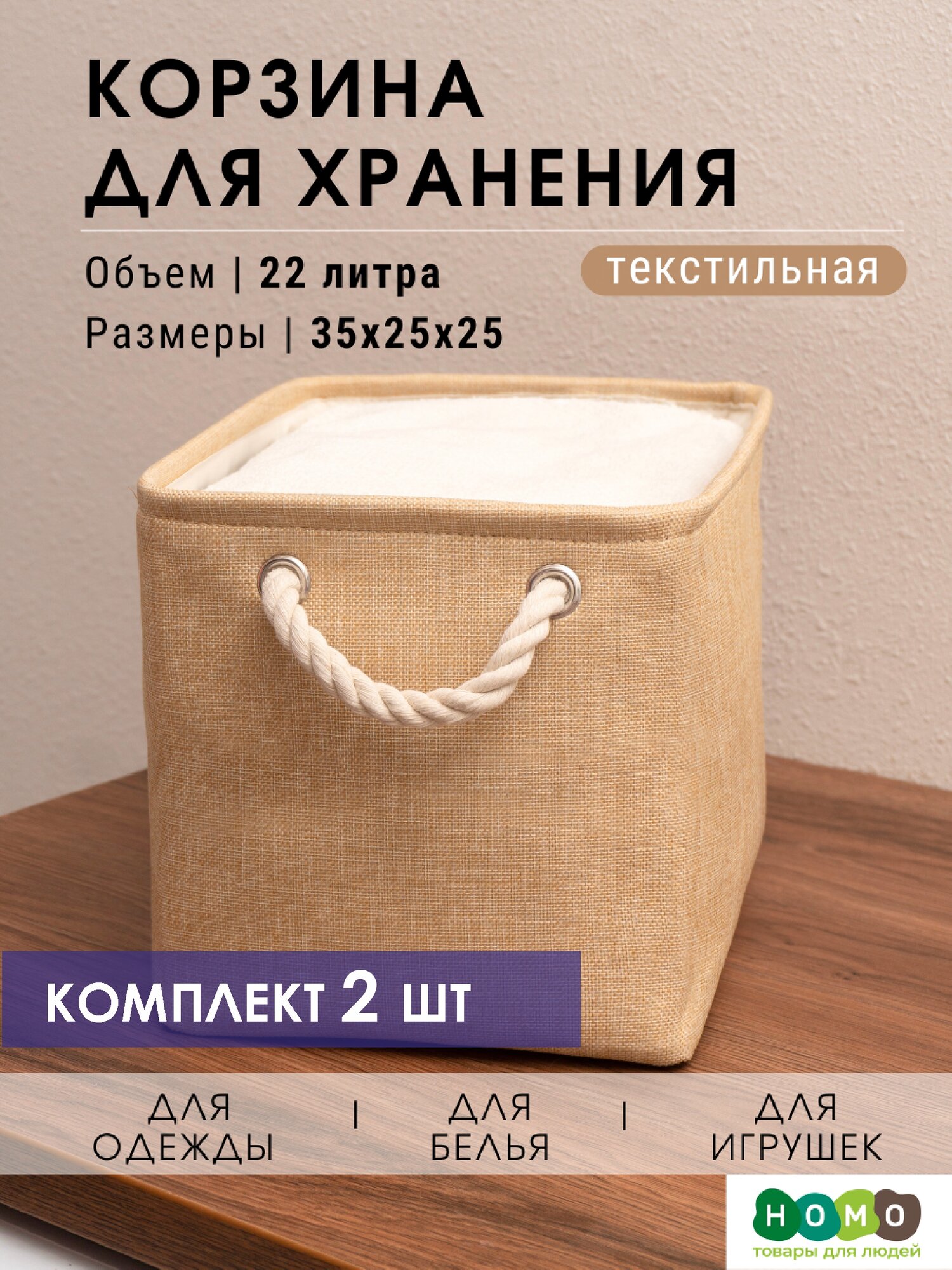 Текстильная корзина для хранения / HOMO / размер: 35*25*25 цвет: бежевый, 2 шт информация: