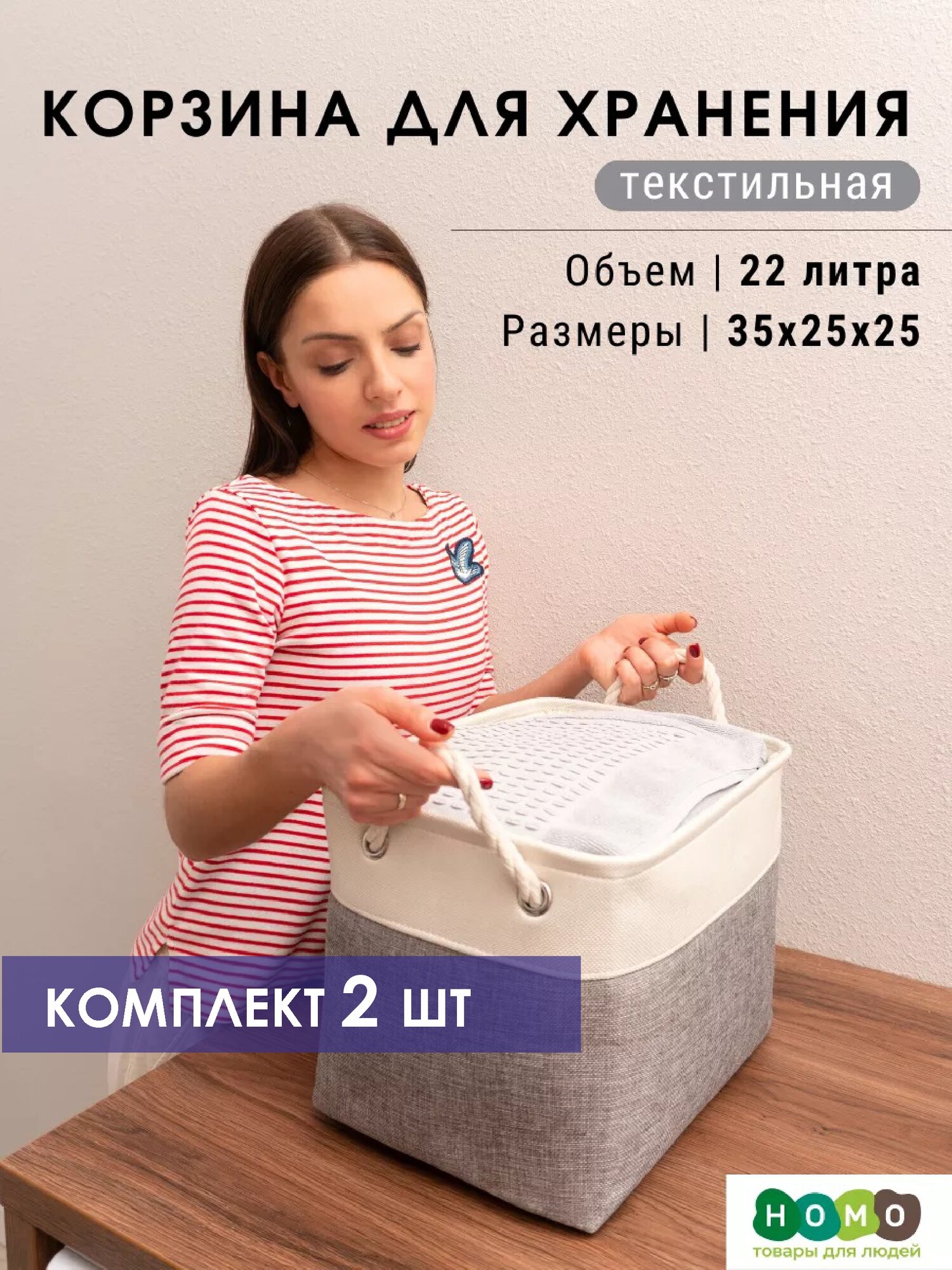 Текстильная корзина для хранения / HOMO / размер: 35*25*25 цвет: серый, белый, 2 шт информация: