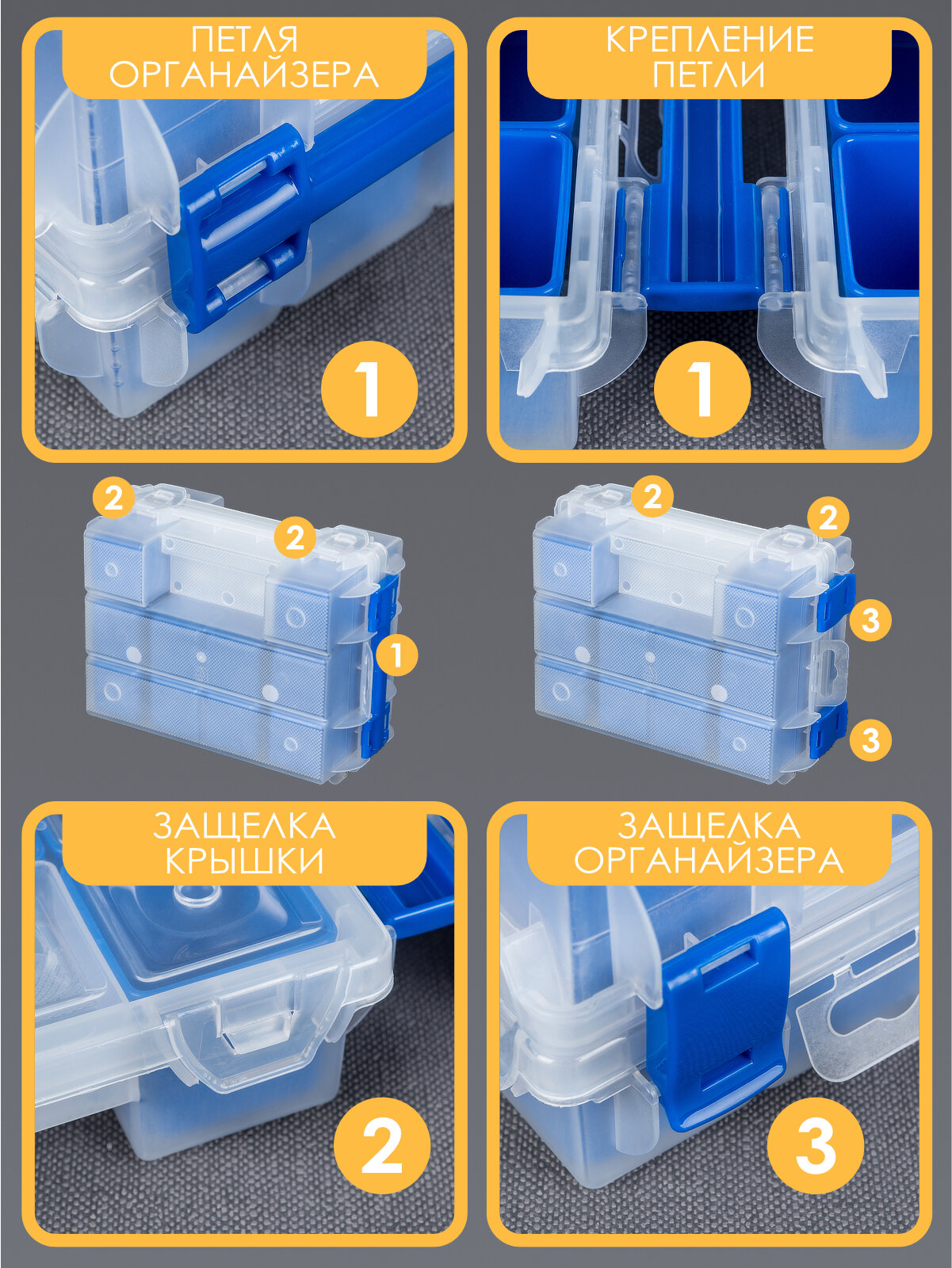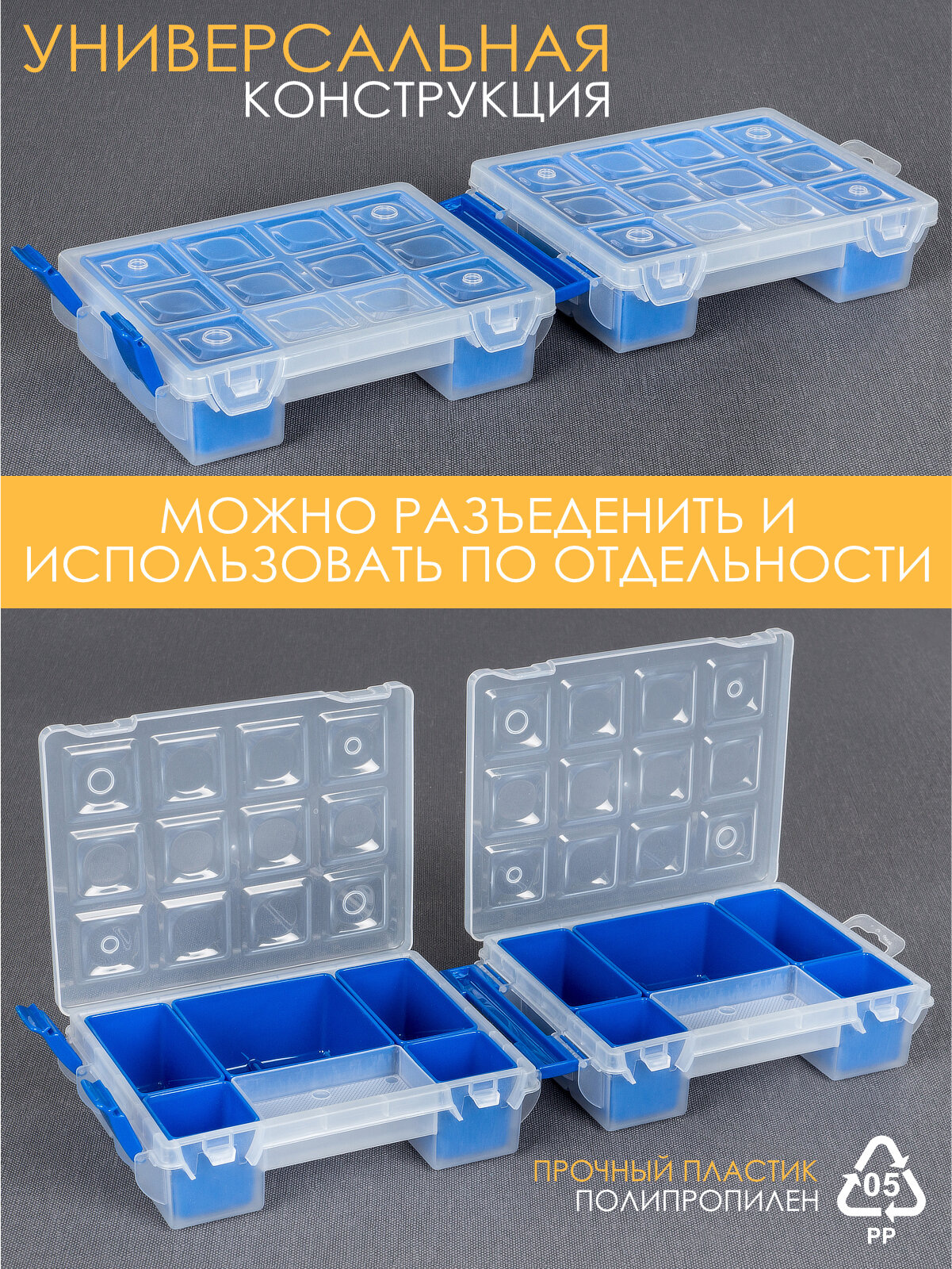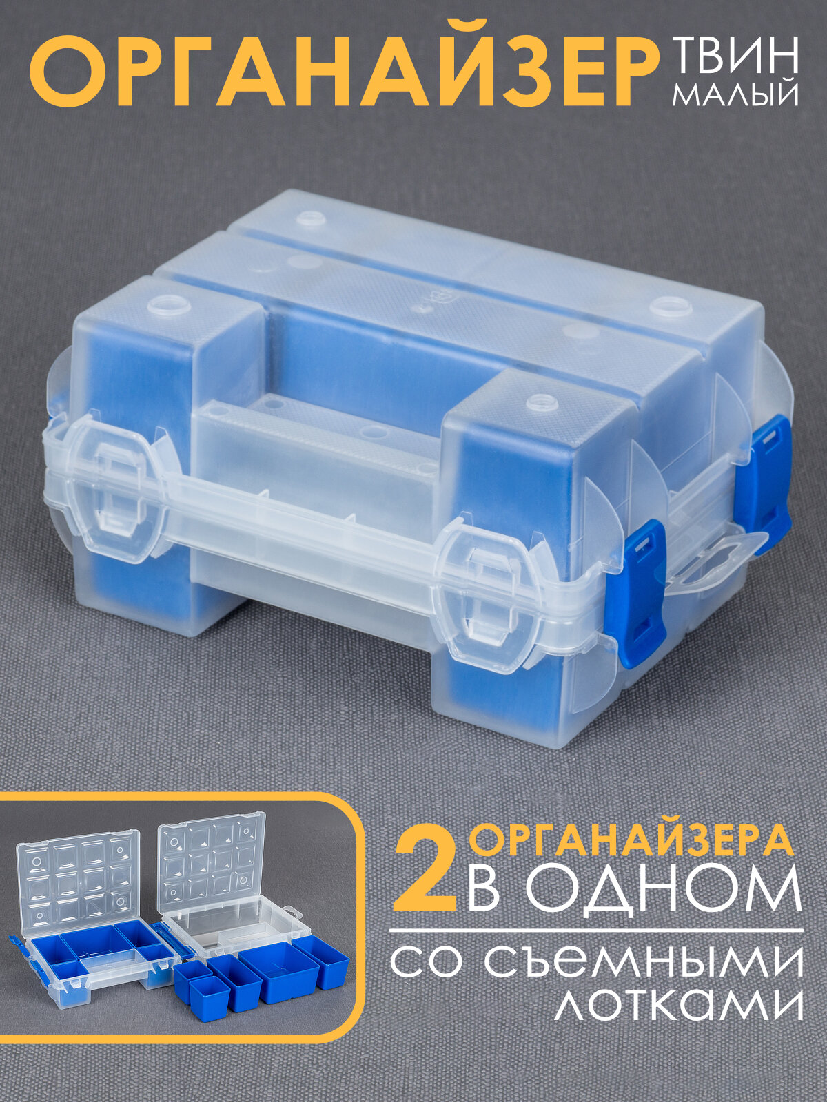 Отзывы на Органайзер двухсторонний для мелочи, метиз, пластик, съёмные лотки, 10 отсеков, бело-синий