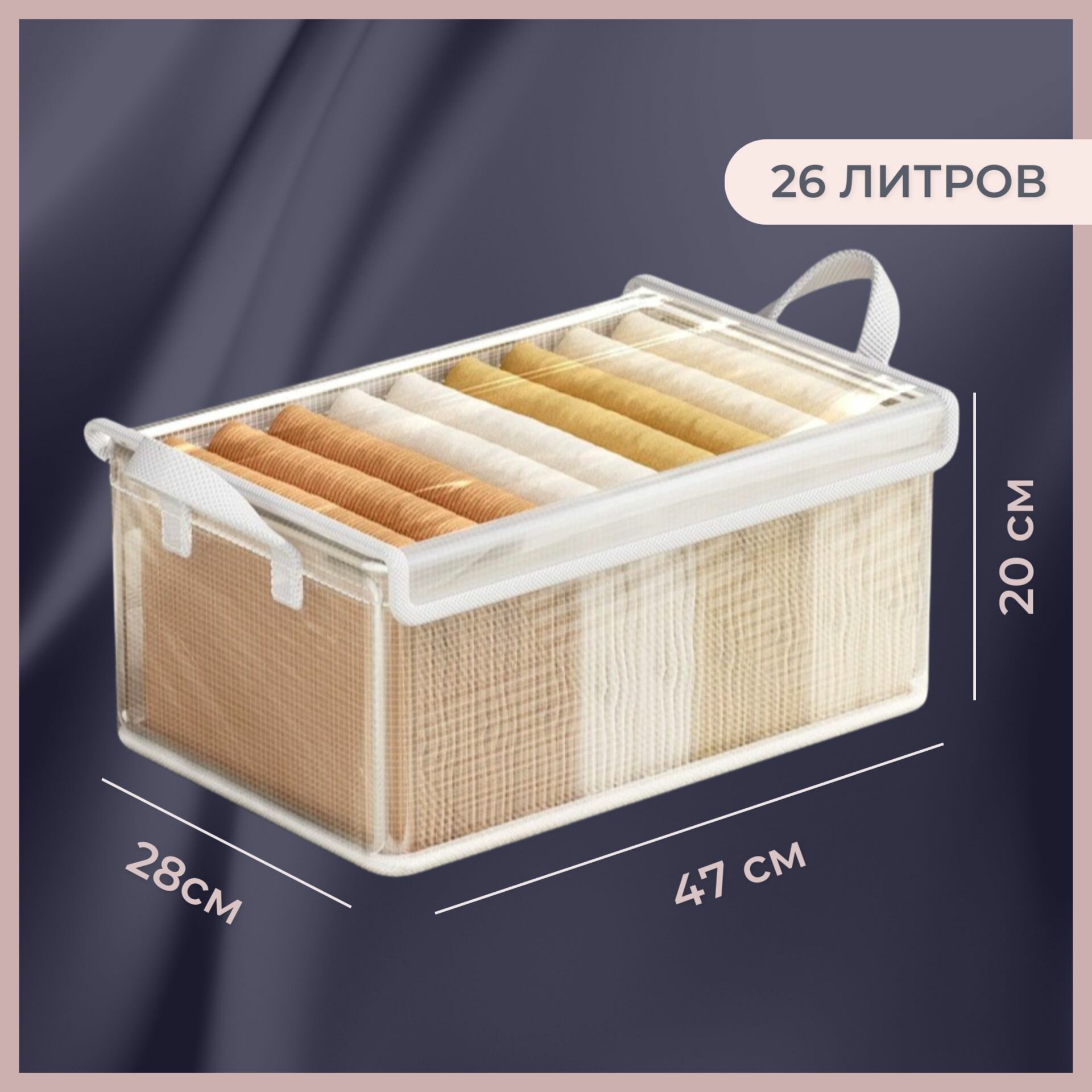 10 цен на Органайзер, короб, кофр для хранения прозрачный с крышкой, 2 штуки, 47*28*20, стальной каркас