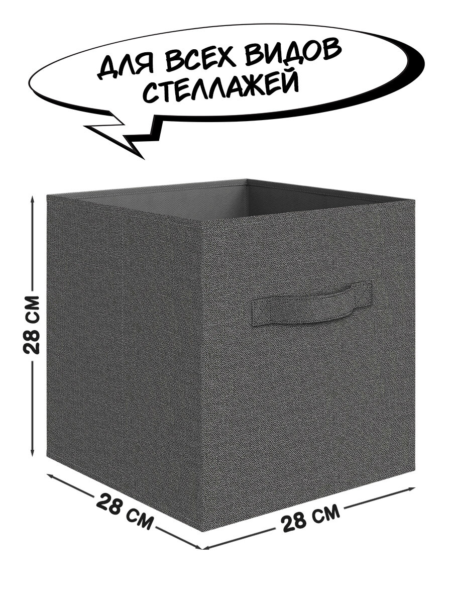 Коробки для хранения вещей, стеллажный, органайзер для хранения, ящик, набор 3 шт, 28*28*28 см, BASIC темно-серый информация: