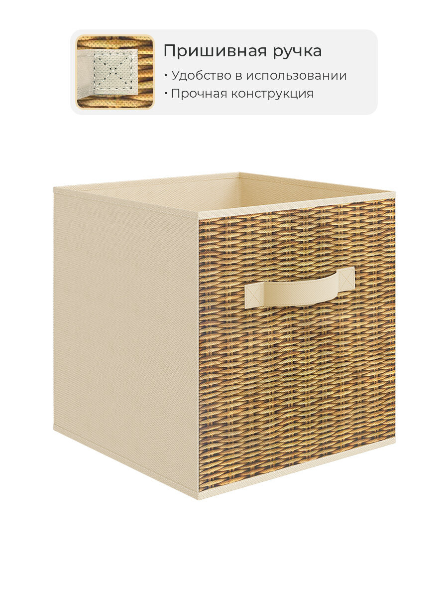 Коробки для хранения вещей, короб для хранения стеллажный, корзина, ящик, набор 2 шт, 27*27*28 см, темно-бежевый, BASIC информация: