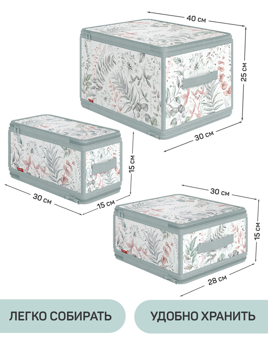 Набор кофров для хранения с застёжкой-молнией 3 шт, 40*30*25 см, 30*28*15 см, 30*15*15см, BOTANIC информация: