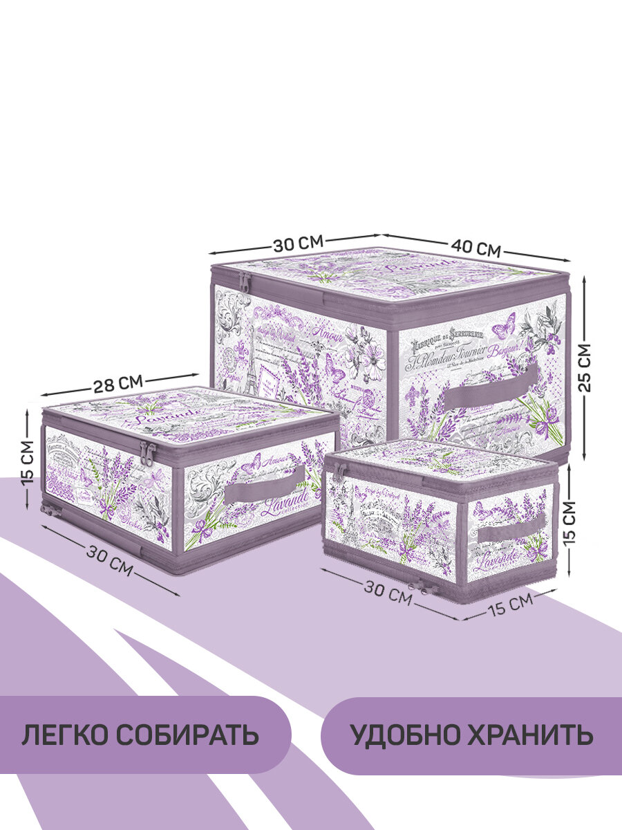 Набор кофров для хранения с застёжкой-молнией 3 шт, 40*30*25 см, 30*28*15 см, 30*15*15см, LAVANDE информация: