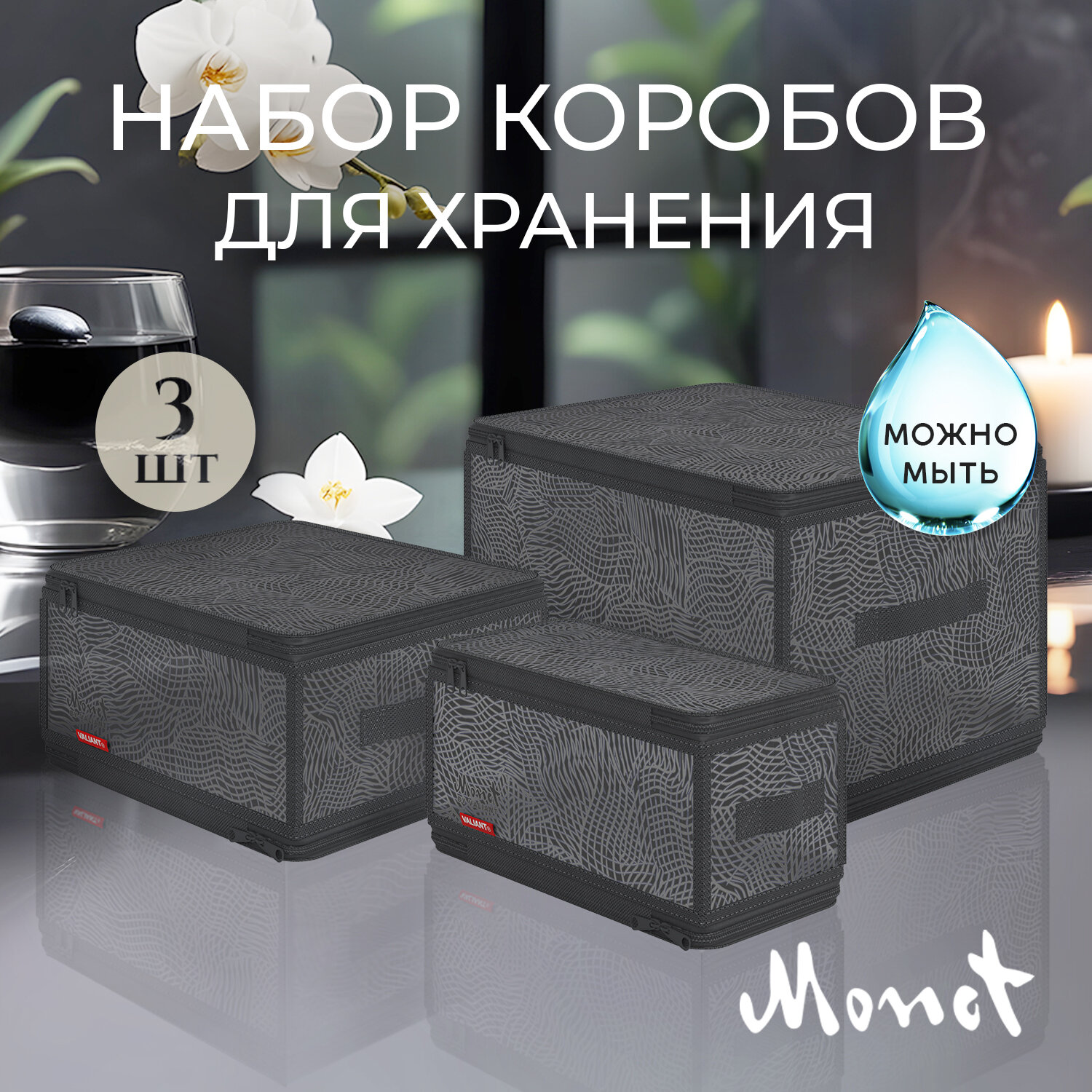 Набор кофров для хранения с застёжкой-молнией 3шт, 40*30*25 см, 30*28*15 см, 30*15*15 см, MONET NIGHT информация: