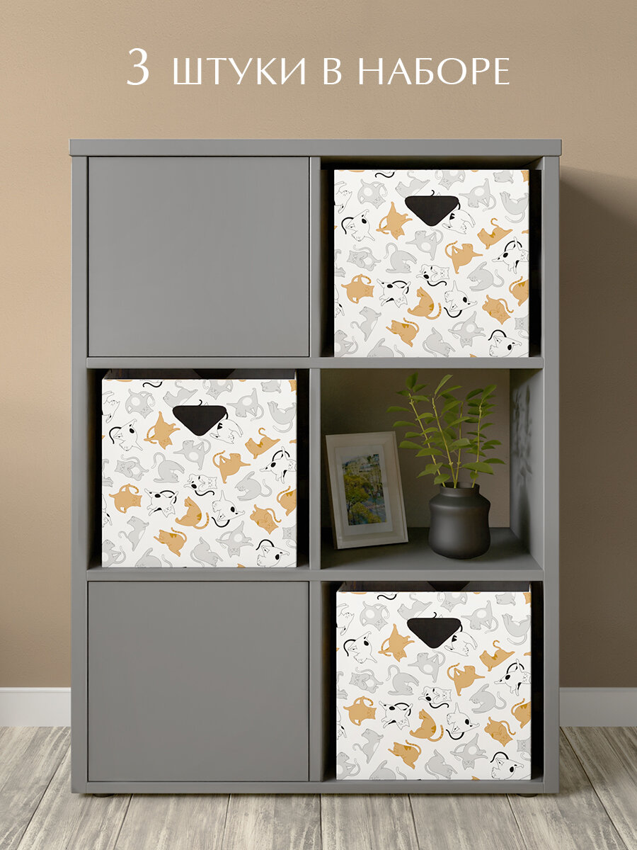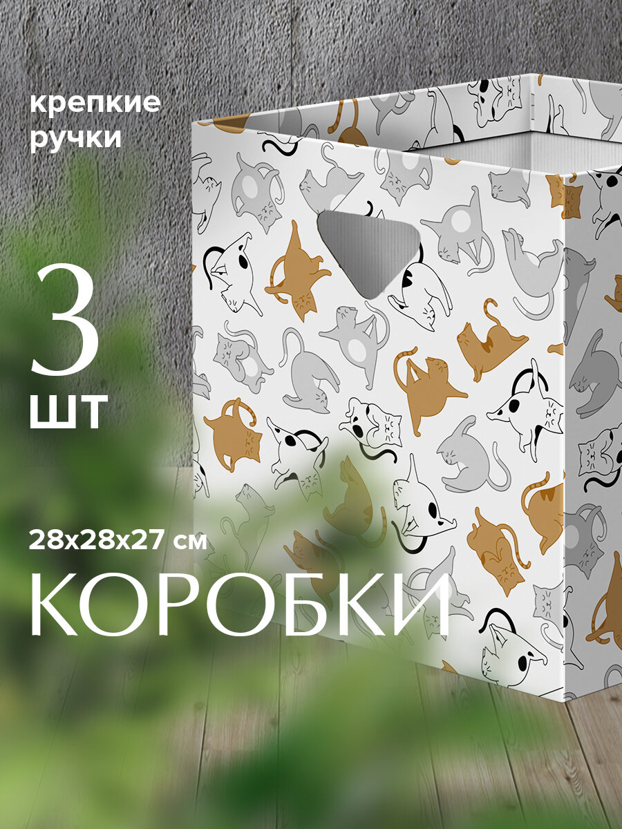 Набор из 3-х коробок для хранения с милыми котиками, 27 х 27,5 х 28 информация: