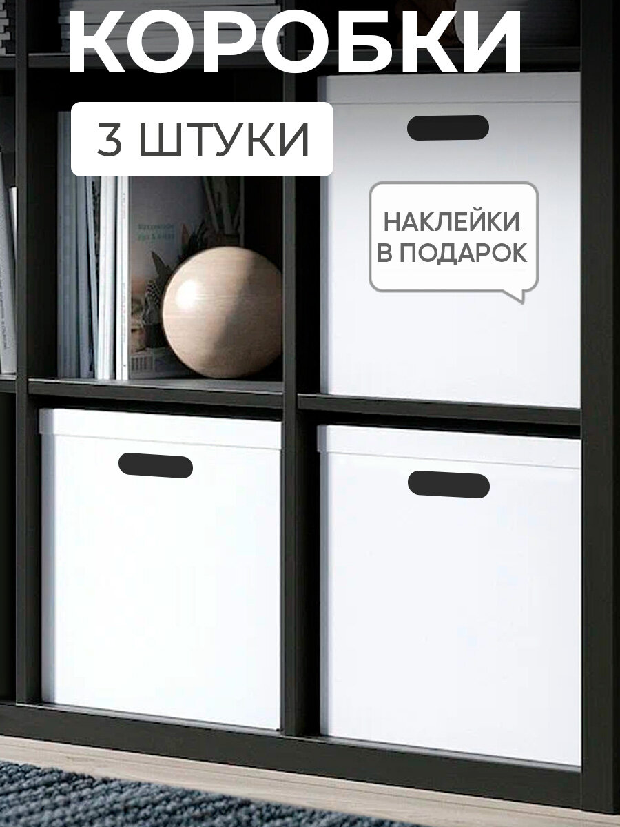 Коробки для хранения вещей, игрушек, обуви, картонные, короб для хранения с крышкой, с наклейками, набор 3 шт, Коробач информация: