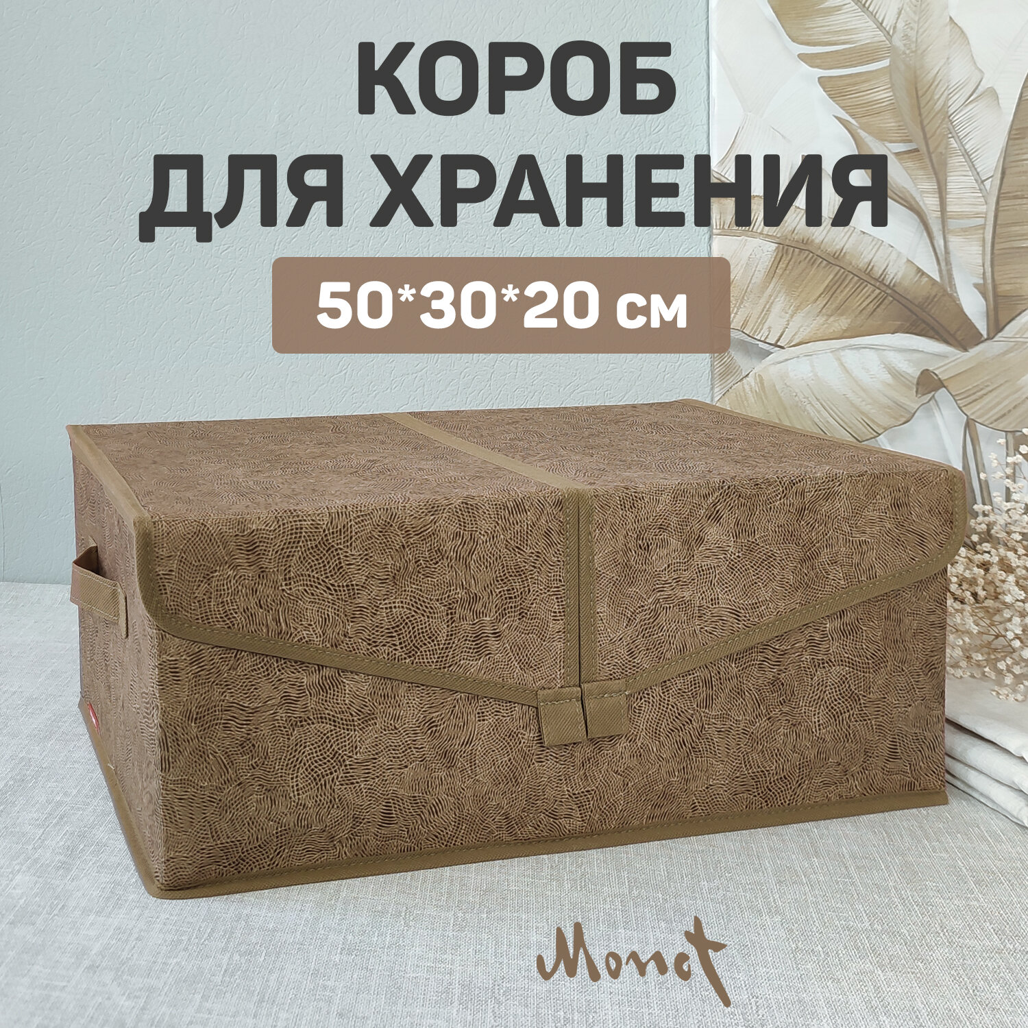Коробка для хранения вещей с крышкой, короб для хранения стеллажный, ящик с двумя отделениями, 50*30*20 см, MONET AUTUMN информация: