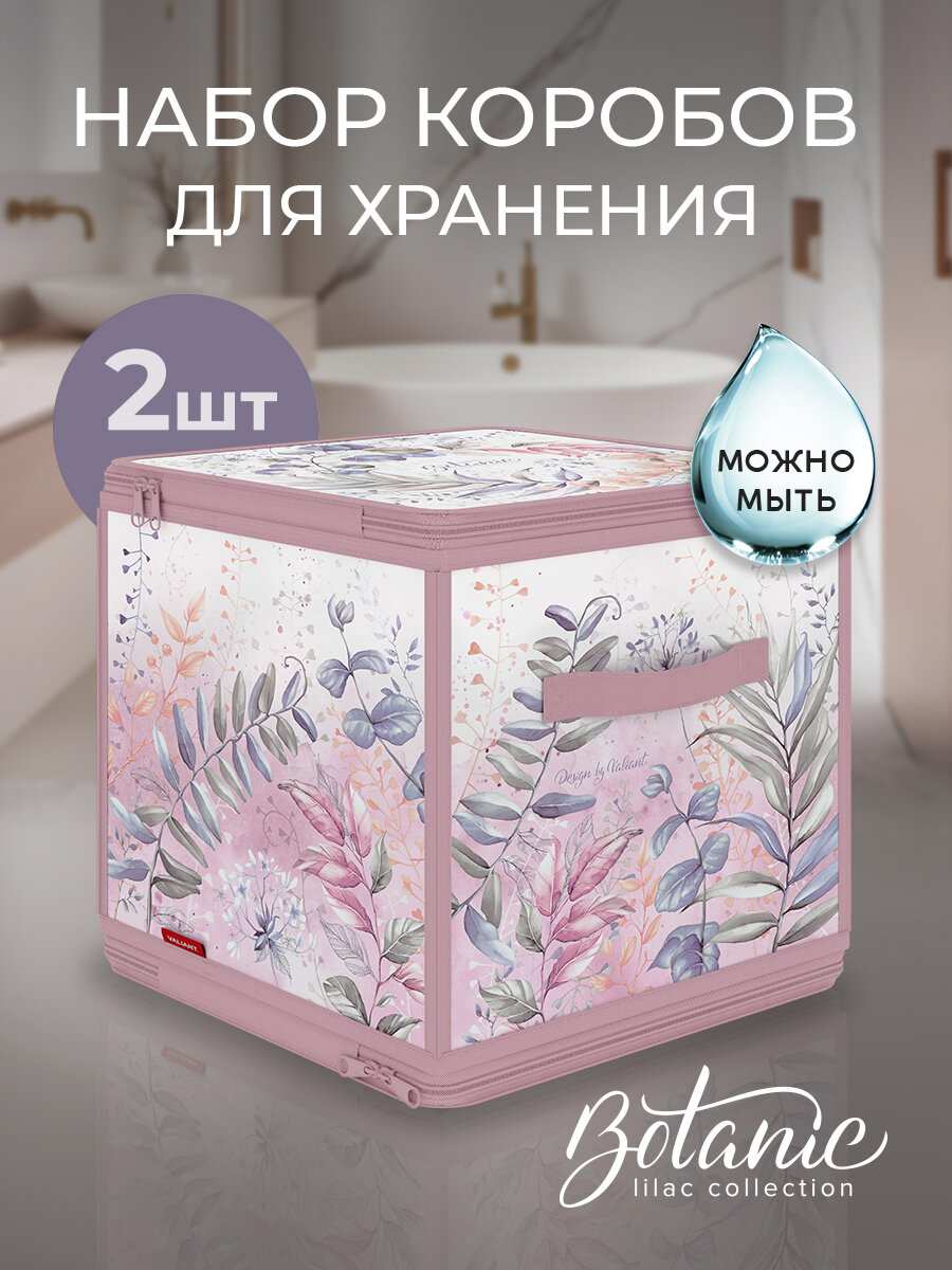 Набор кофров д/хран. с молнией 2 шт, 28*28*28 см, BOTANIC LILAC информация: