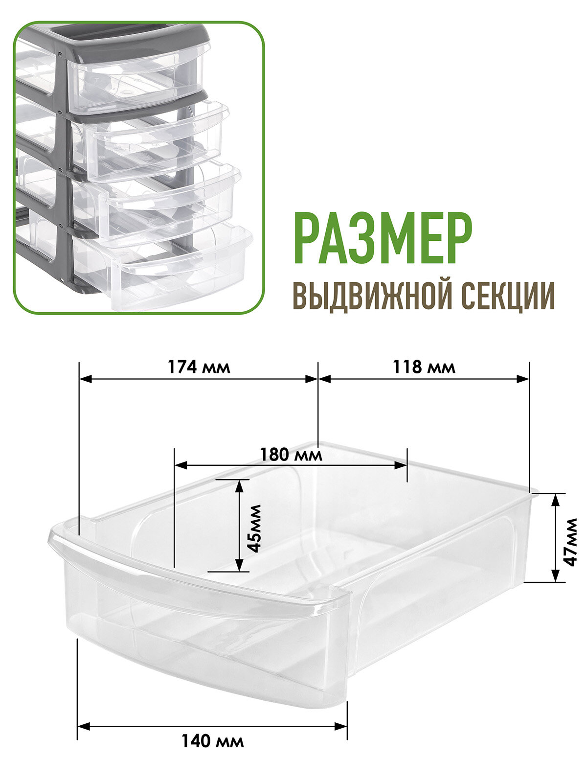 Органайзер для хранения мелочи, косметики, канцелярии, лекарств, шитья, 4 прозрачных ящика, 15x20x23 см информация:
