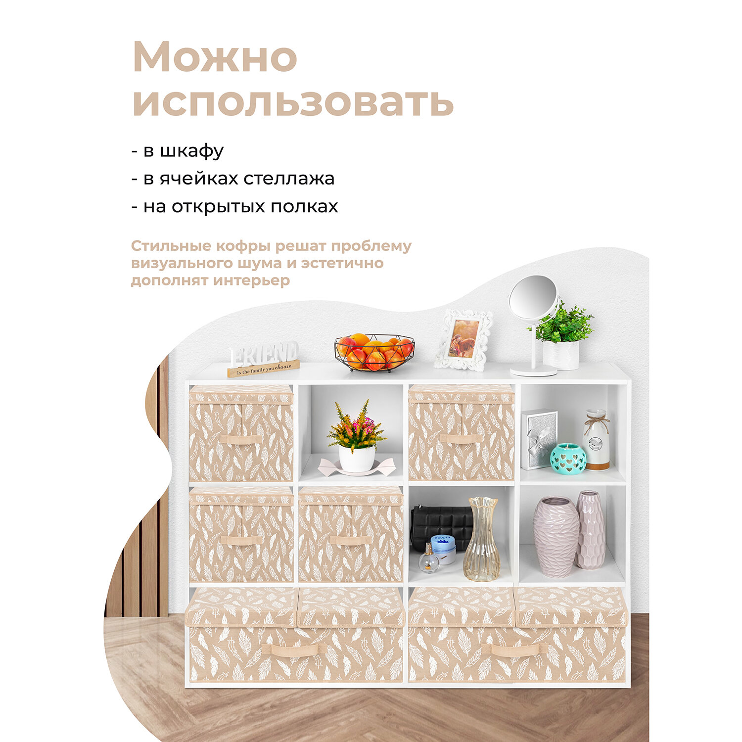 Короб-кофр складной, органайзер для хранения вещей 50х30х20см EL Casa Перья белые на бежевом, 2крышки на липучках, ручка информация: